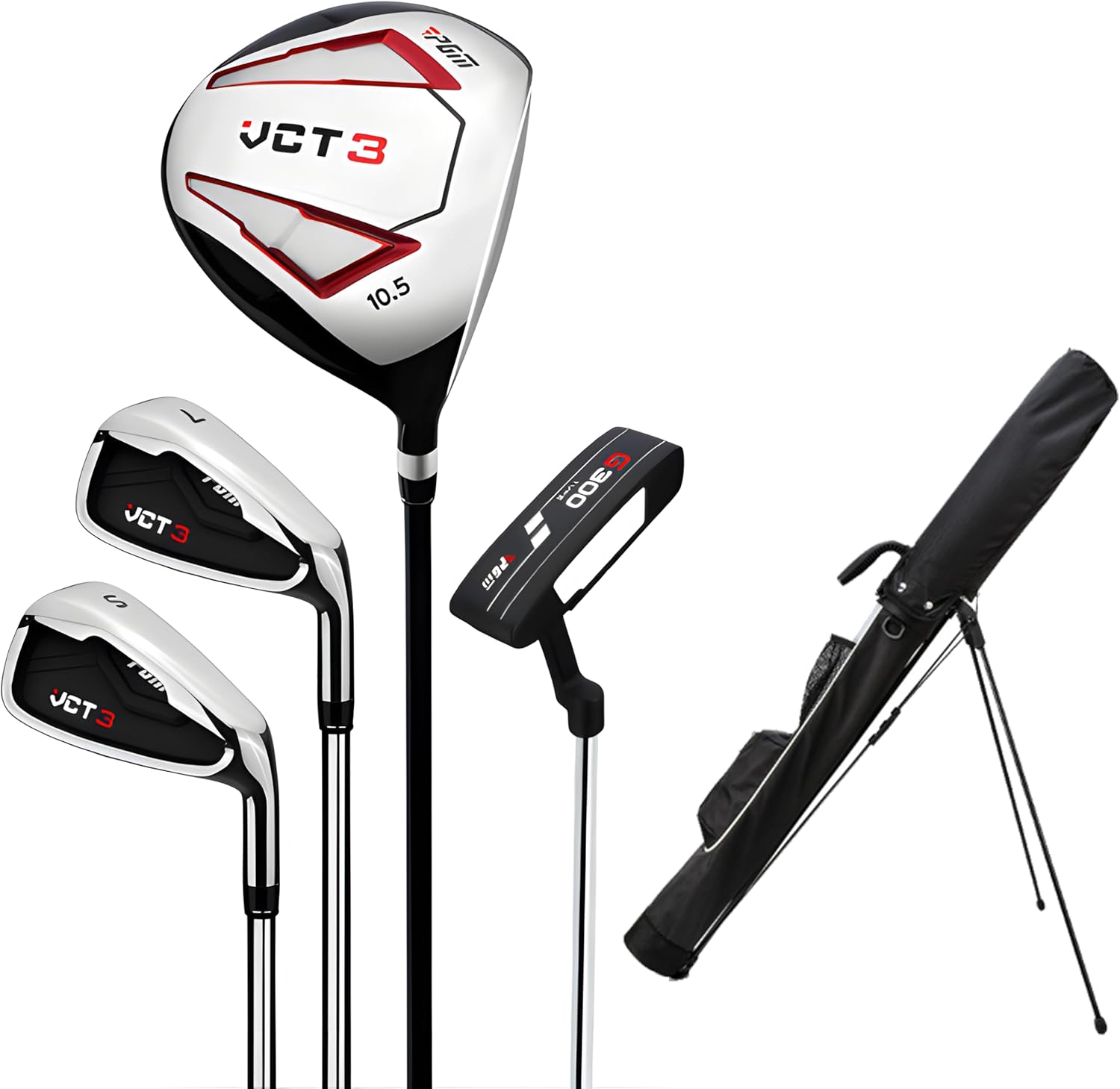 PGM Beginner Golf Clubs Sets VCT3 for Men 5 Piece Includes Golf Driver, 7 Iron, Sand Wedge, Putter and Lightweight Carry Sunday Club Golf Cart Bag Right Handed