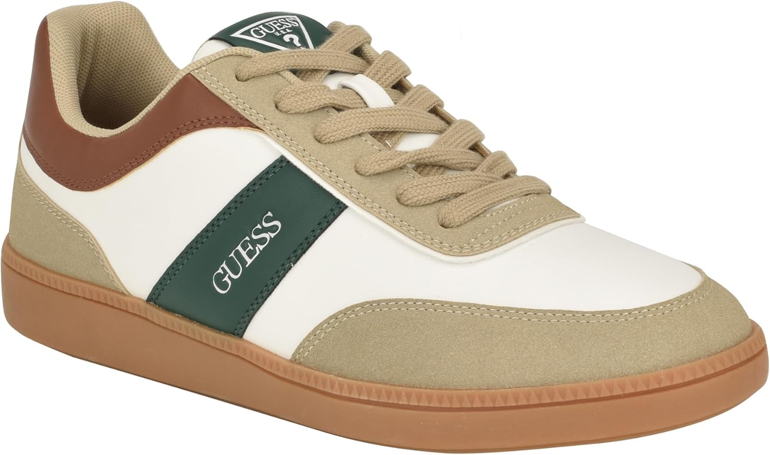 Step into style with these GUESS Men's sneakers. Clean branding and a trendy appeal give this sneaker versatility for many looks. Not to mention, the memory foam insole adds comfort. Est. 1981, Guess is a global lifestyle brand and a symbol of a young, adventurous lifestyle.