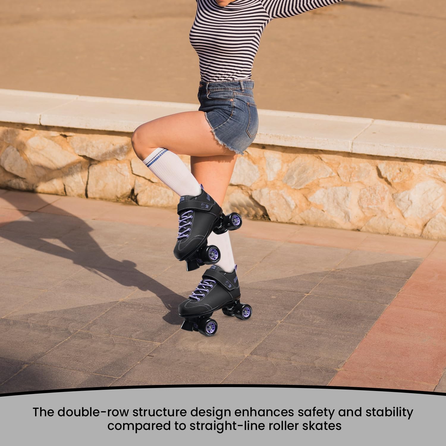 DOUBLE STRUCTURE DESIGN: These roller skates are prepared with an ideal double-row structure that is safer and more stable than straight-line roller skates. The fabric inside the skates is very comfortable and doesn't harm your feet