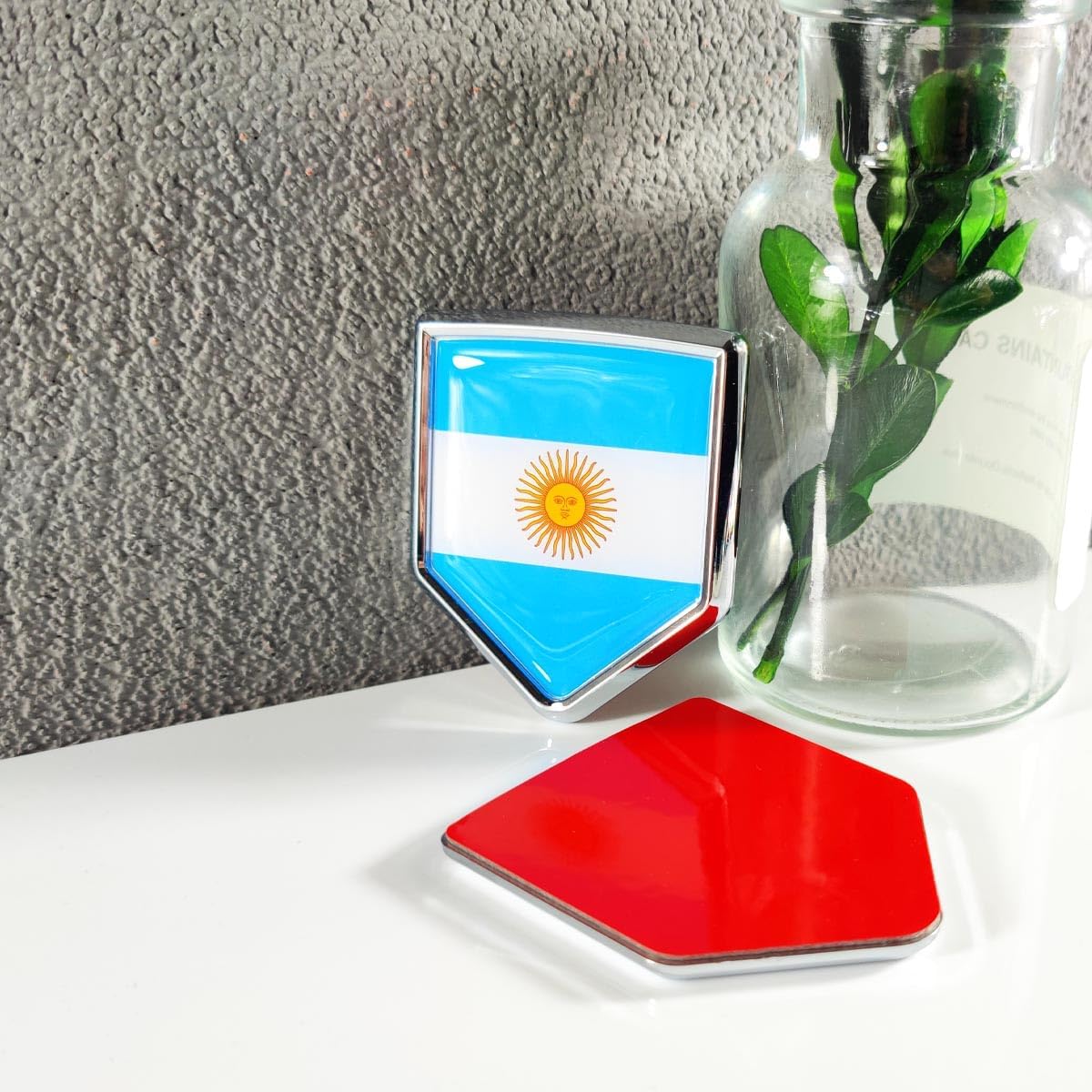 Set of 2 Argentina emblem flag per pack. It's a great way to decorate vans, laptops, etc. and add a simple patriotic touch to your belongings.