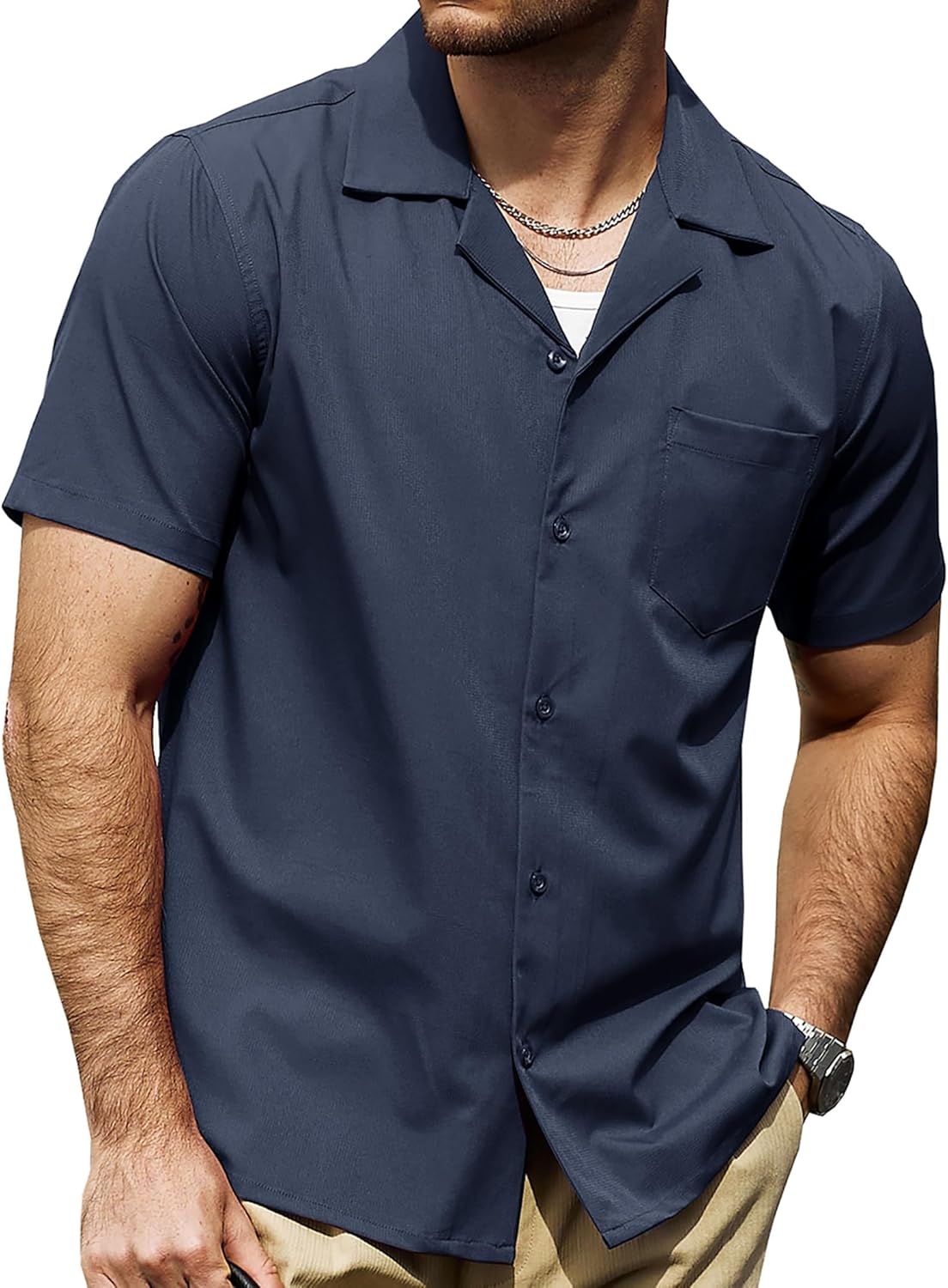 VATPAVE Mens Casual Short Sleeve Button Down Shirts Wrinkle Free Summer Beach Shirts with Pocket