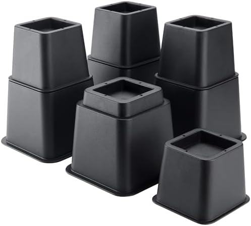 BTSD-home Adjustable Bed Risers 4 Pack Bed Raisers Blocks Lifts 3,5 or 8 Inch Heavy Duty Suitable for Couch Desk Chair and Sofa Black
