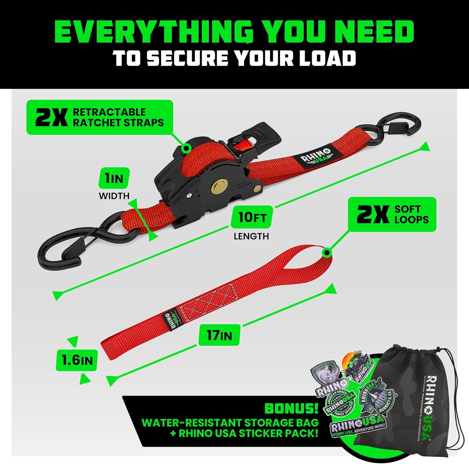 CHOOSE THE BEST, AVOID THE STRESS - Authentic, High-Quality Retractable Ratchet Straps—Designed and Tested in the USA to Exceed Safety Standards, Ensuring Your Cargo is Secure Without Compromise.
