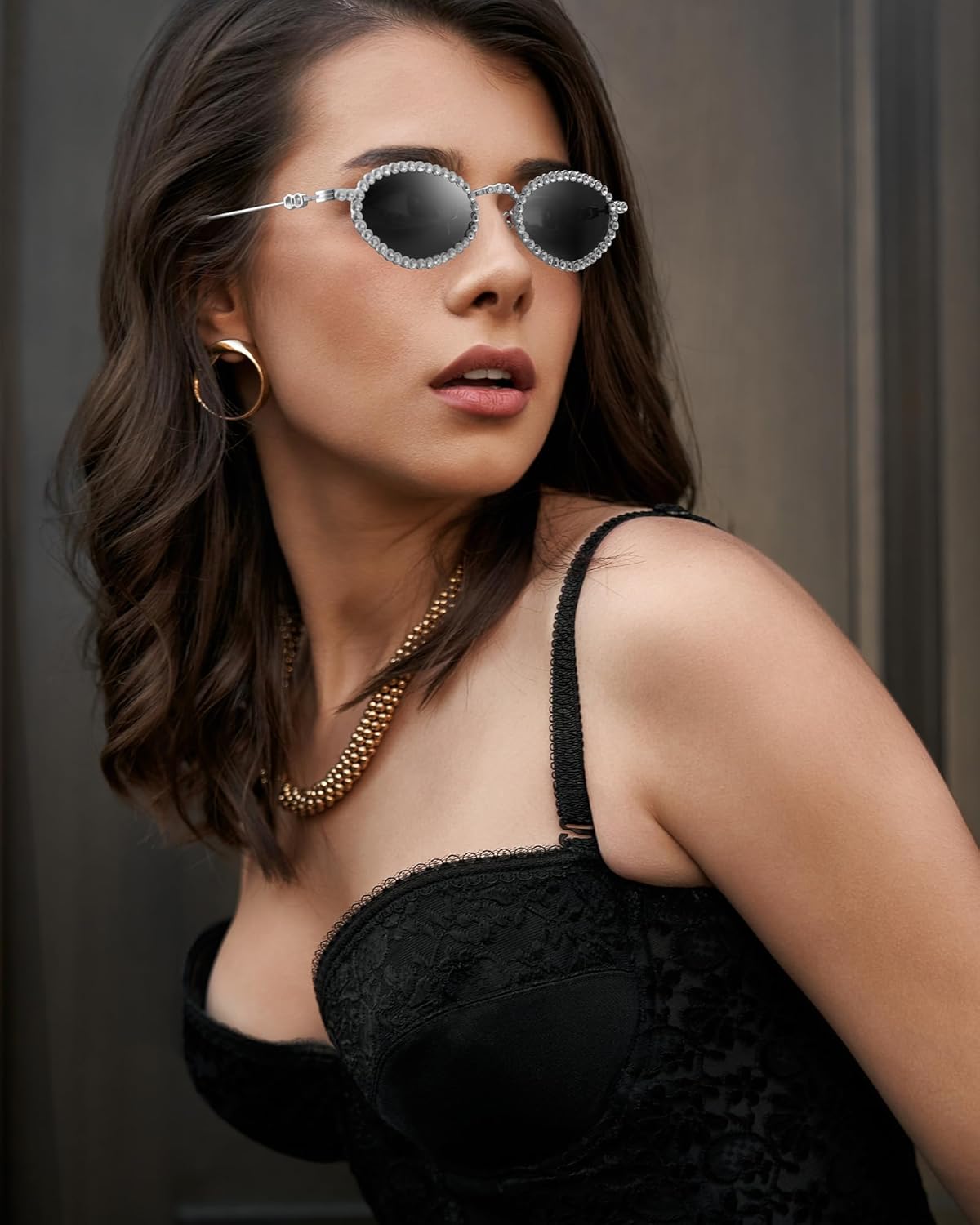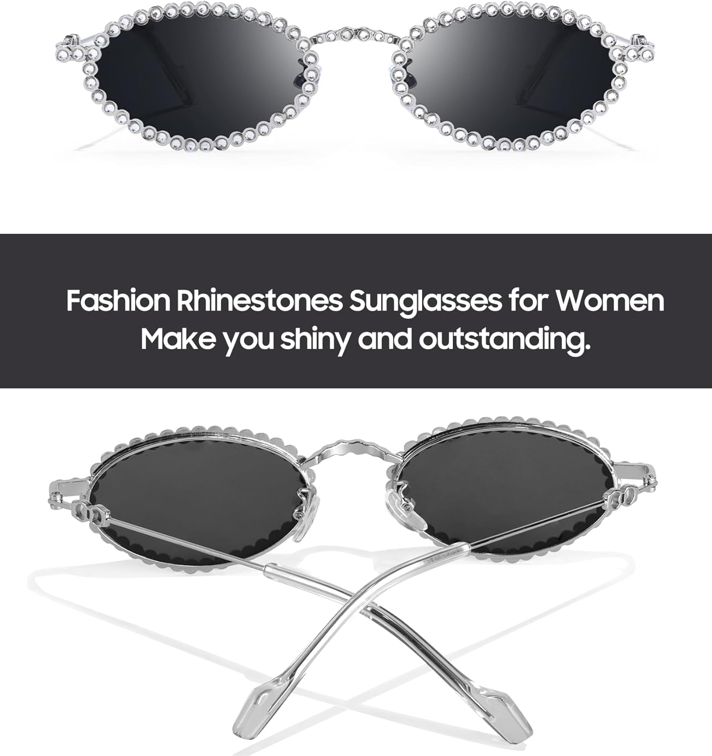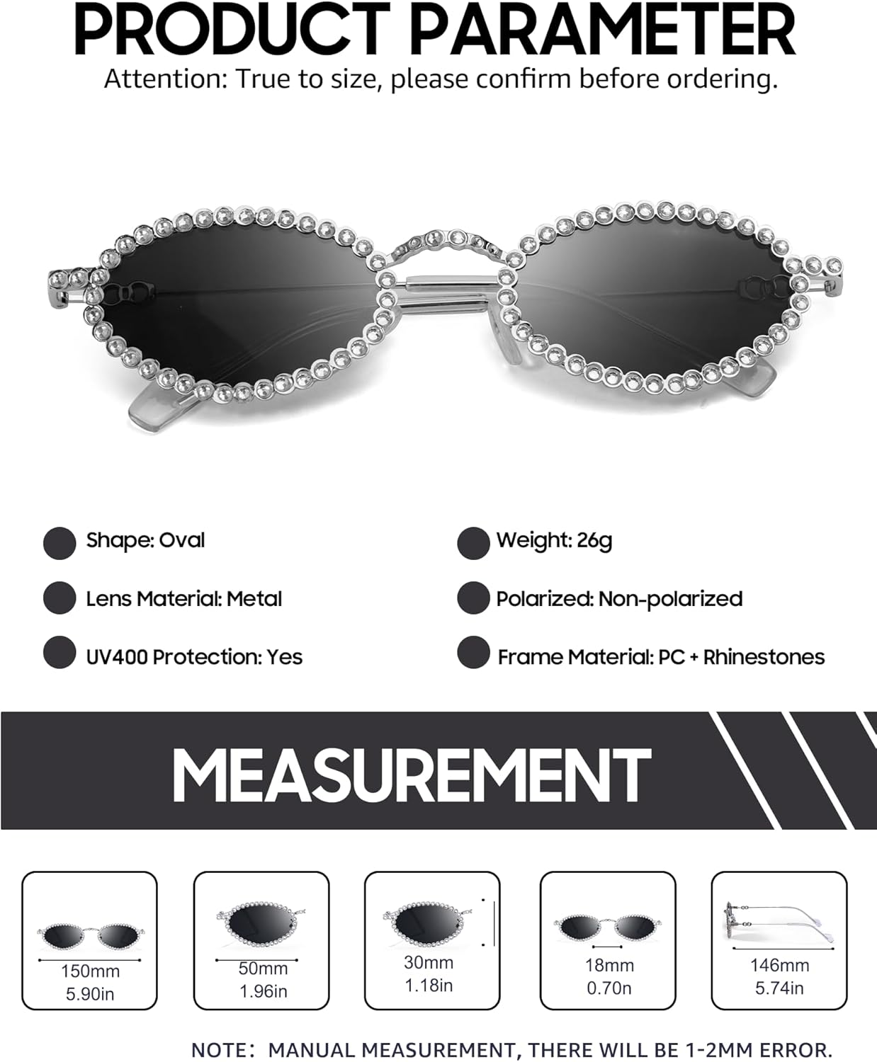 IGnaef® Oval Rhinestone Sunglasses for Women Bling Glasses Jeweled Frame Costume Party IF5181