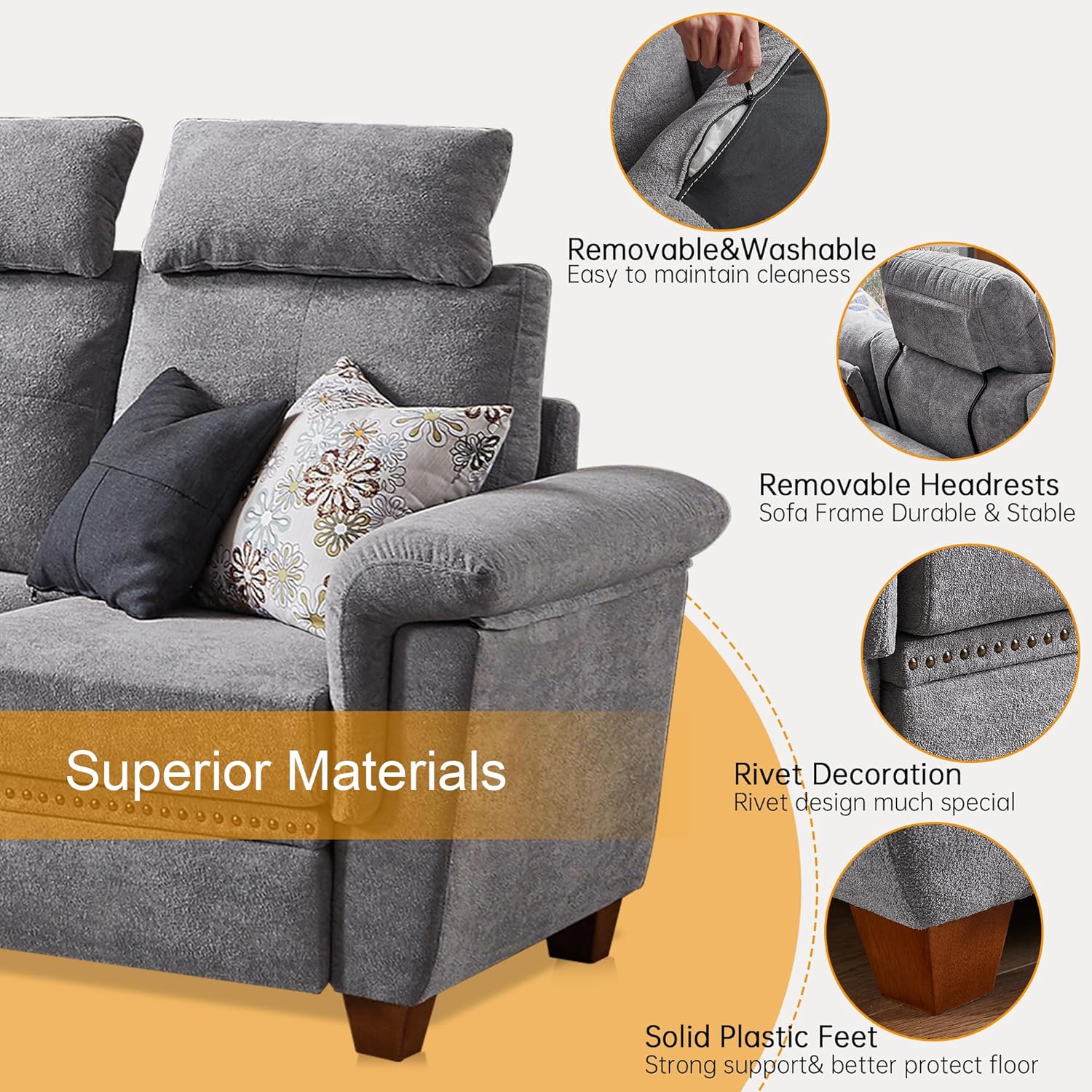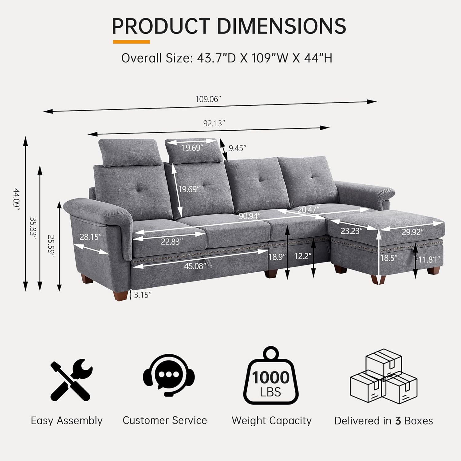 Ultimate Comfort - This sectional sofa for living room are well cushioned with high-resilient foam, along with pocket springs for great rebound and support. The back cushions, armrest and headrest pillows are all filled with ample Polyester. Having this sofa will drive away your fatigue and provide relaxation throughout the day