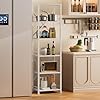 [Multifunctional Shelves]: The simple design of white standing shelves makes it versatile. can be used not only as a office bookshelf, but also as a display shelf, ladder rack, corner wall shelf, plant stand, bathroom shelf, perfume shelves, kitchen cabinet, ect. More uses of the skinny metal bookcases await you to explore!