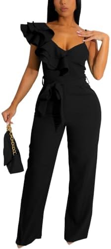HBQ Womens Casual One Piece Jumpsuits V-Neck Sleeveless Ruffle Elegant Romper Wide Leg Pant Sexy Party Clubwear Overalls