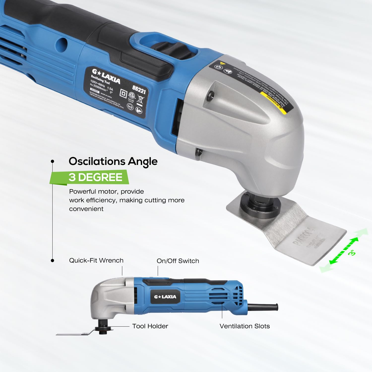 Oscillating Tool, 1.5A Oscillating Multi Tool with with 3° Oscillation Angle, 12 Piece Accessories Scraping, Grinding, Sanding, Cutting