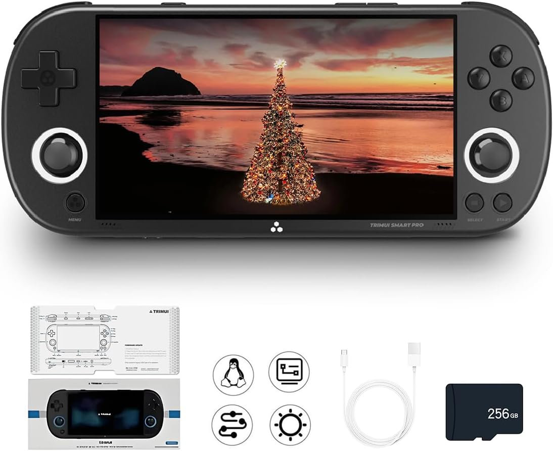 TRIMUI Smart PRO Handheld Game Console with 14300+ Games, 256G SD Card, Support WiFi Multiplayer Online Battle, Linux System A133P Processor, 4.96-inch IPS Video Game Player (Black)