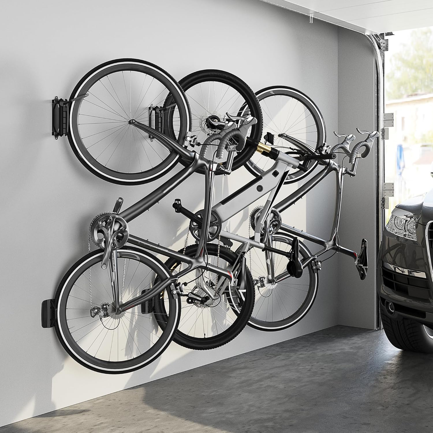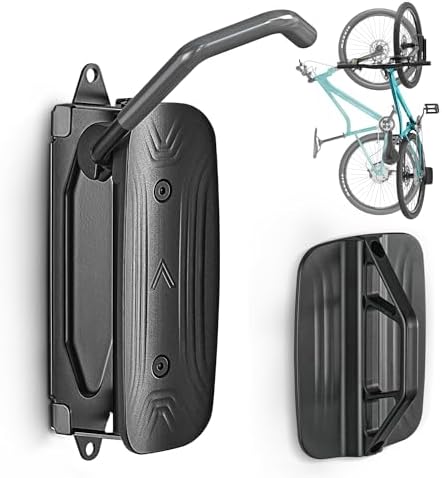 【Upgraded 150° Swivel Design】 Swivel design with bearing system, bike hangers for garage conveniently stores bikes in center, left or right-angled position, simply pivot your bike left or right with a +65°/-85° swivel range. The swivel system allows you to store bike flush against the wall, making it a convenient storage solution around parked cars and inside apartments.