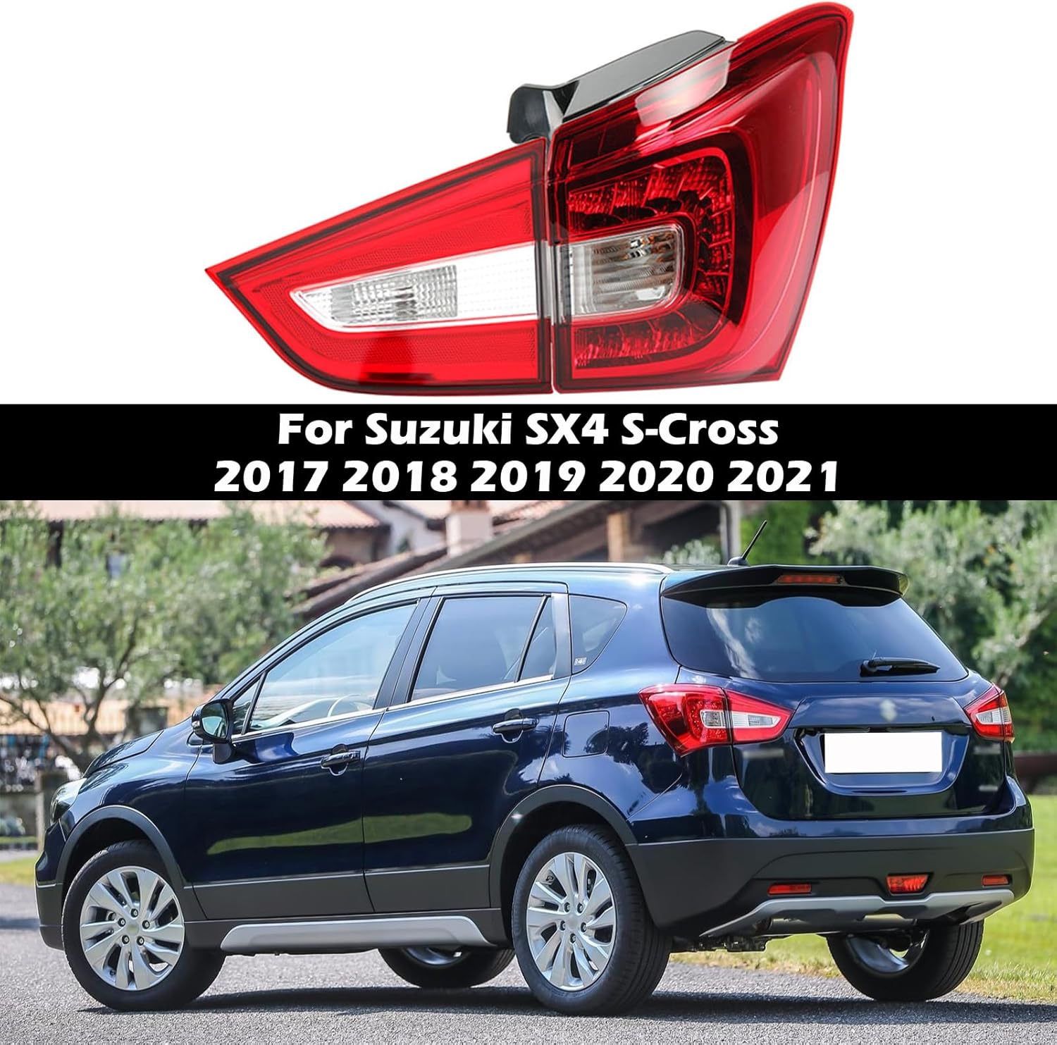 Car Lighting Accessories Rear Tail Light Brake Lamp with LED Light Wire Harness Fitment: ●For Suzuki SX4 S-Cross 2017 2018 2019 2020 2021. Material Type: ●High-quality rear taillight brake lamp assembly made of ABS. Features : ●100% Brand New in Original Packaging. ●Completely sealed, can still operate intact in time of heavy rain. ●Made of durable ABS, it has been tested many times before leaving the factory to be durable. ●High Quality made by OEM approved manufacturers with materials that meet strict OEM requirements. Attention: ●Please make sure this taillight fits for your vehicle before you purchase. ●Please note that professional installation is recommended and no instructions are included with the package. ●Light shooting and different displays may cause the color of the tail lamp in the picture a little different from the real thing. The measurement allowed error is +/- 1-3cm.