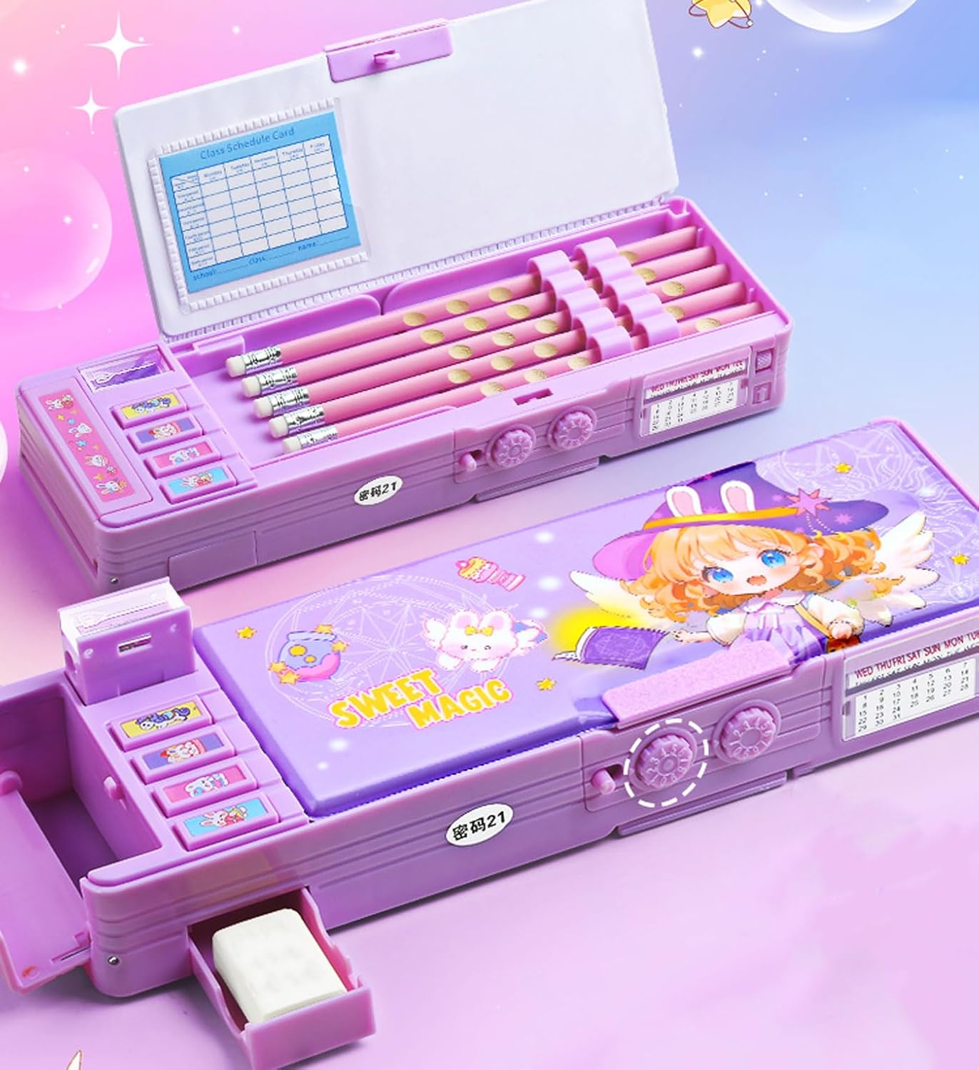 【Estuche de diseño único para chicas】:cubierta con doble bloqueo de contraseña para facilitar la pérdida de artículos de papelería. Nuestro estuche interactivo también cuenta con pequeños compartimentos, agenda, pizarra y tarjeta de horario de clase