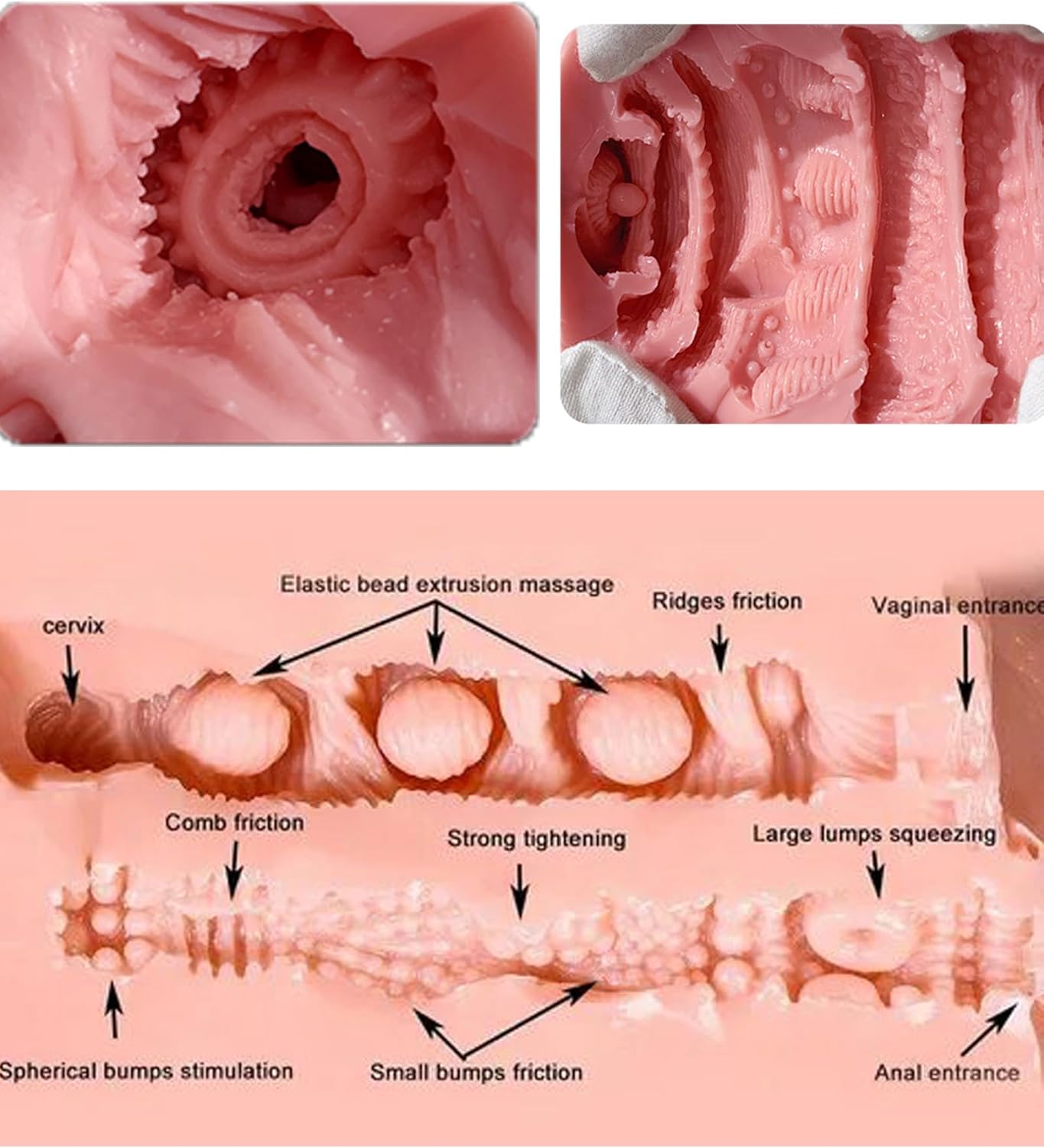 【Incredibly 3D Relaistic Structure V Channel】Our male sex toy features a variety of stimulating Passage that snugly wrap around your intimate areas, creating a pleasurable sensation with every movement. Crafted to simulate a realistic female physiology. This alluring design offers two separate tight vaginal and anal cavities, each providing a unique suction sensation.