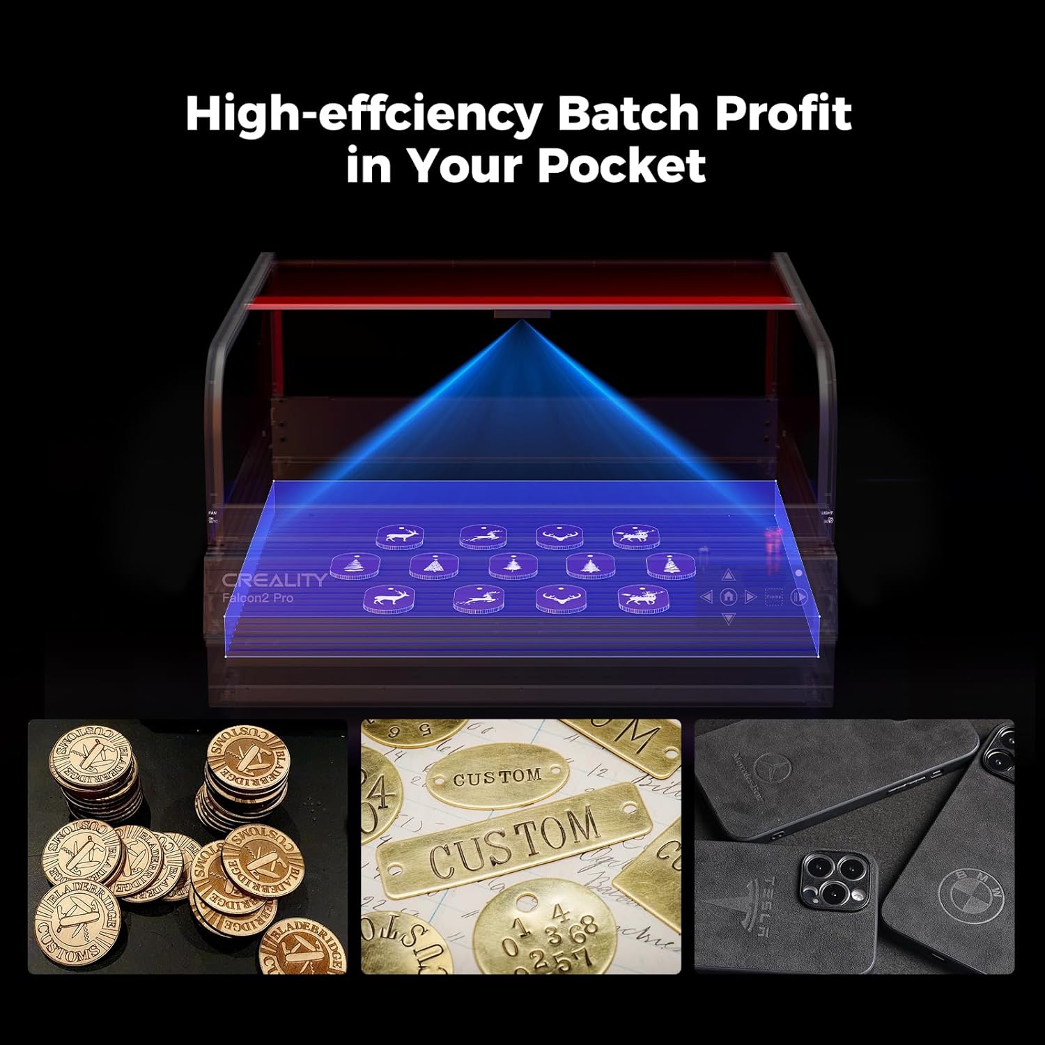 【Ideal for Cutting Professional】-2024 Newest Class1 Creality Falcon2 Pro integrated enclosure 22W laser engraver machine, with high output power, high containment safety, intelligent focus, accurate positioning, one key control, wide applicability characteristics. Based on the above, the laser engraver and cutter machine's speed to rapidly realize mass production is perfectly suited for professional players and sole traders.