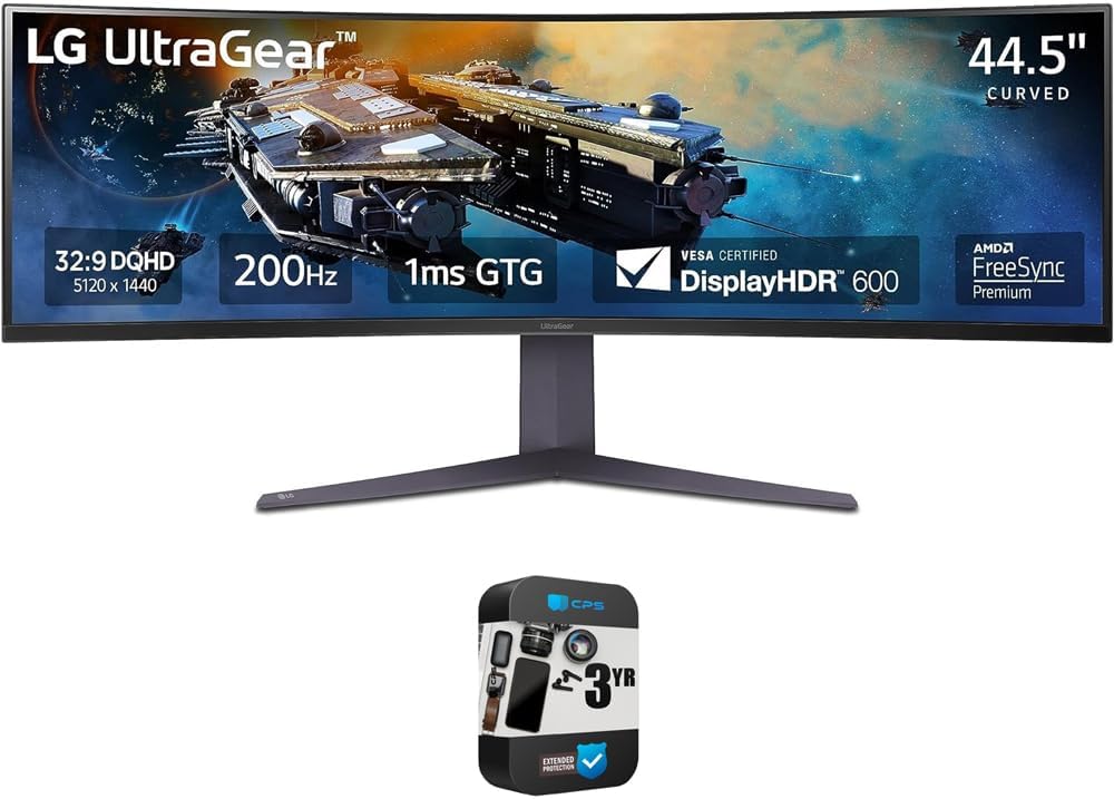 LG 45GR75DCB 45-inch Ultragear Curved Gaming Monitor, 3-Way Adjustable Stand Bundle with 3 YR CPS Enhanced Protection Pack