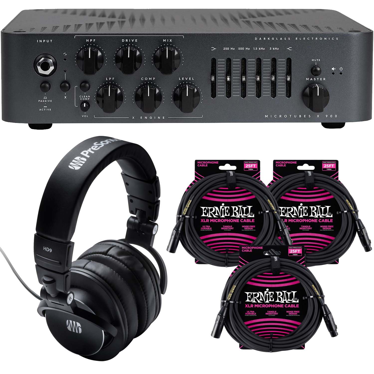 Darkglass Microtubes X 900 – 900W Bass AmpHead, Black, Presonus HD9, (3) ErnieBall XLR 25FT Bundle