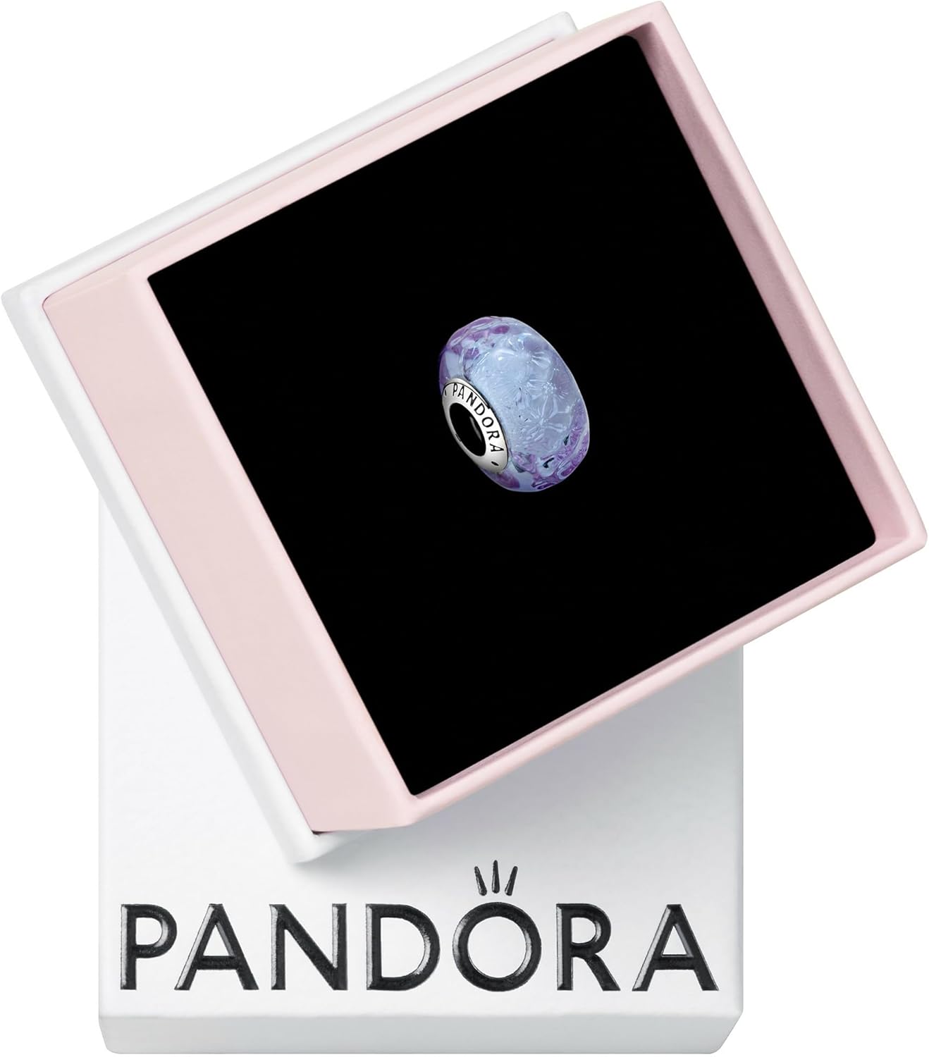 PANDORA Wavy Lavender Murano Glass Charm - Compatible with PANDORA Moments - Stunning Jewelry for Women - Gift for Her - Sterling Silver with Murano Glass - With Gift Box
