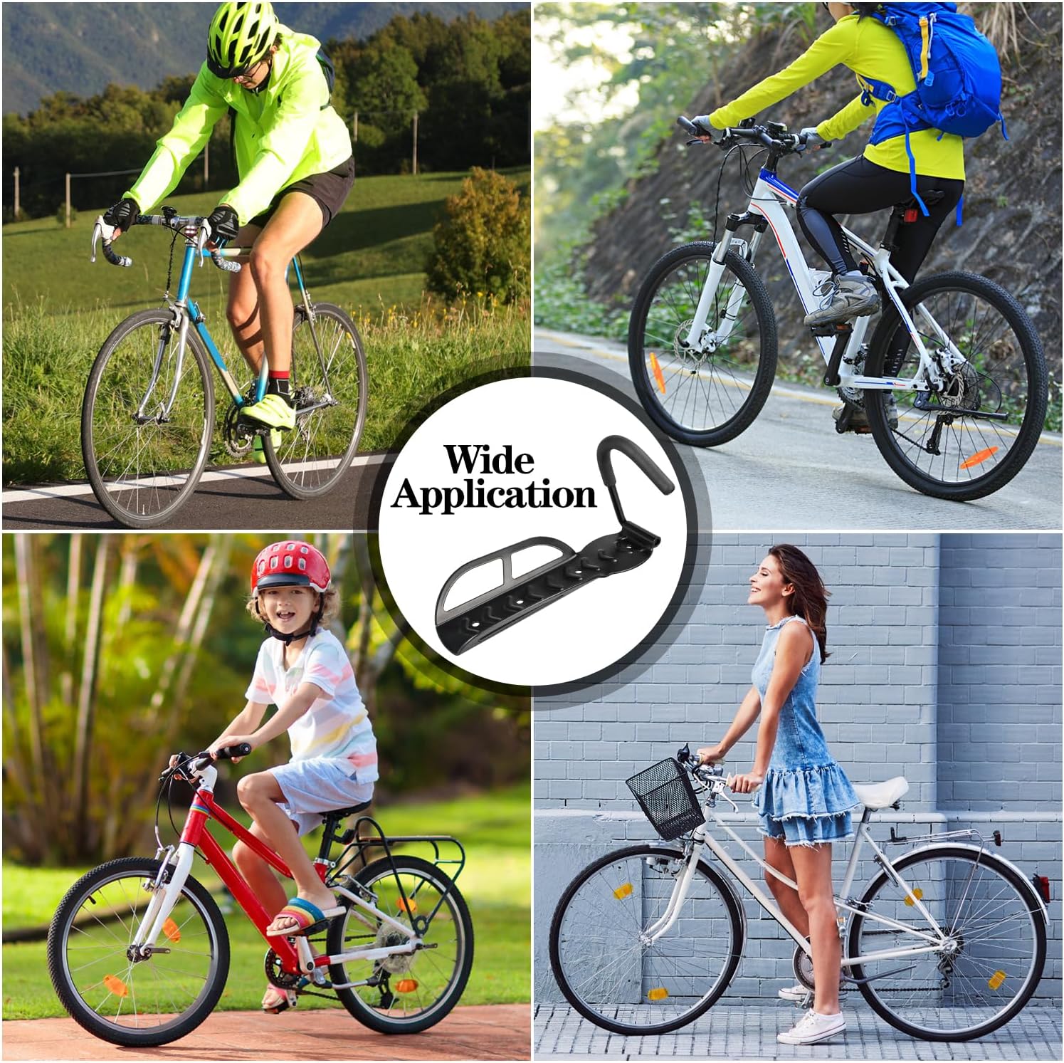【Wide Application】- Bike wall mount hanger is suitable for road bike, MTB bike, small bike, women's bike and so on.