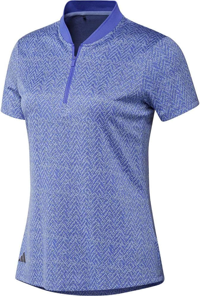 Any day. Any course. You can count on this women's adidas golf shirt made in jacquard fabric. The simple mock neck and quarter zip add unique details to the clean and classic polo look.