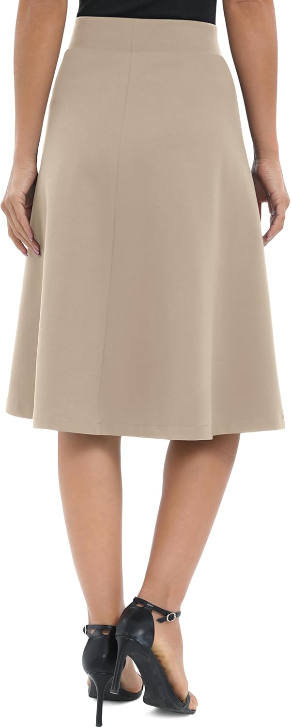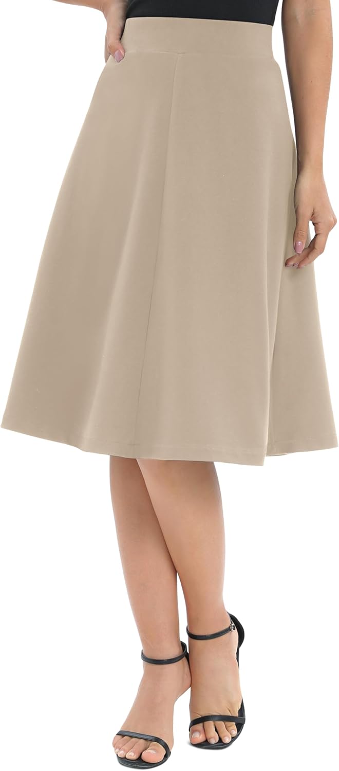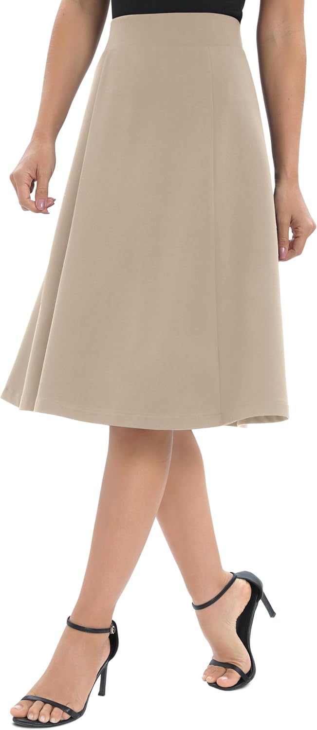 Urban CoCo Women's A-Line Elastic High Waist Flare Work Midi Knee Length Stretchy Skirt