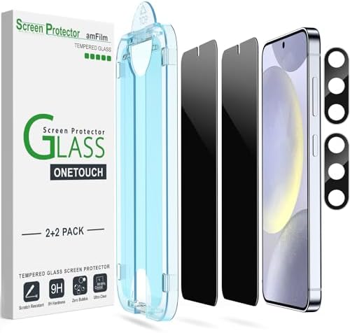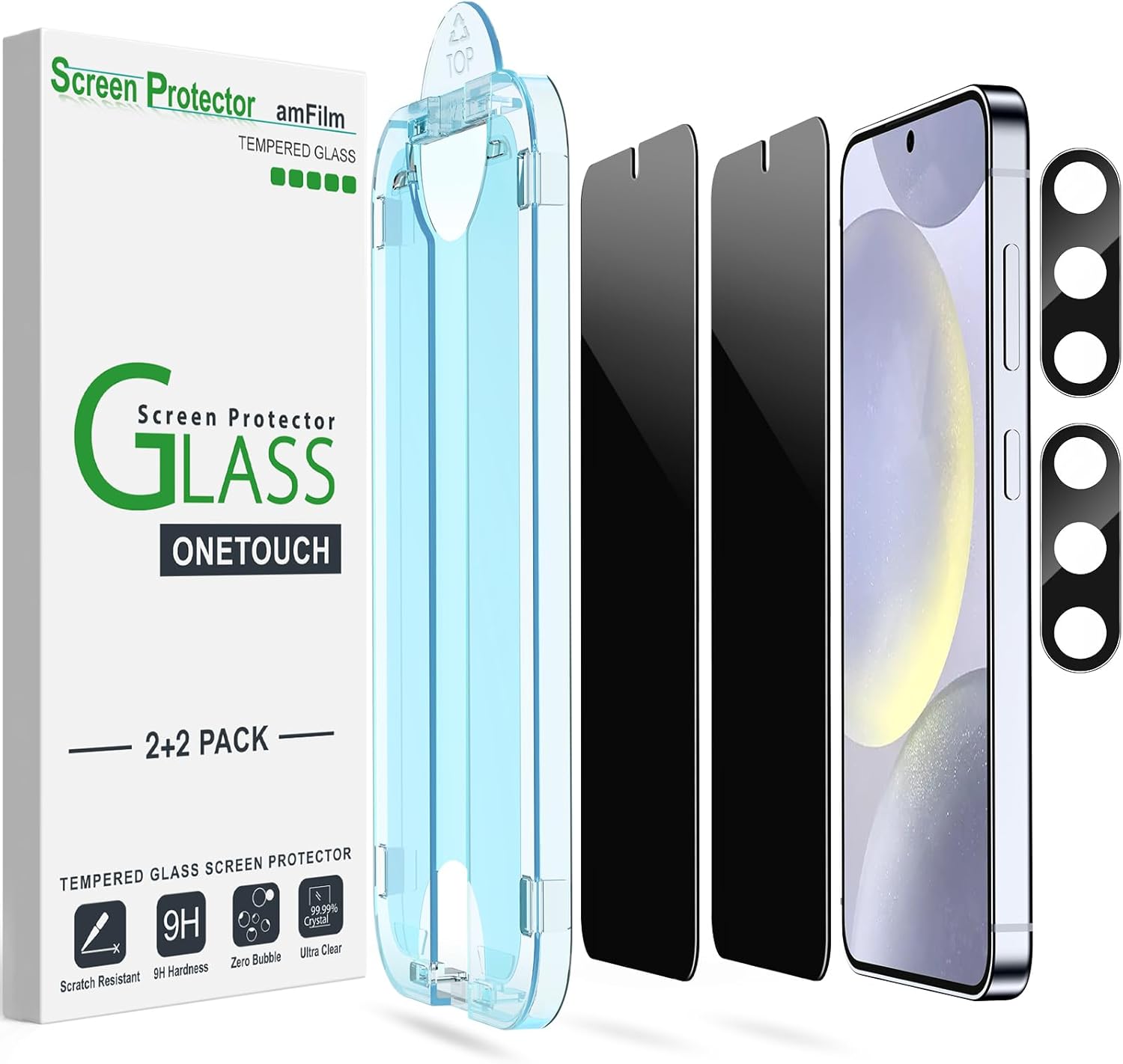 amFilm Auto-Alignment OneTouch for Samsung Galaxy S24+/S24 Plus 6.7" Privacy Screen Protector + Camera Lens Protector, Tempered Glass, 30 Seconds Installation, Bubble Free, Privacy Protection 2+2 Pack