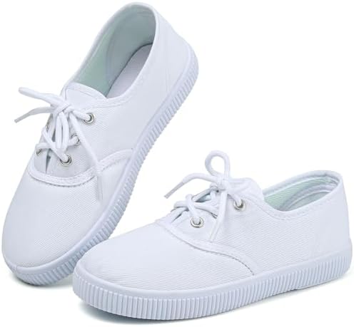Boy's Girl's Kids White Canvas Shoes for Kids Slip-On Lightweight Sneakers Casual Skin-Friendly Walking Running Shoes(Toddler/Little Kids/Big Kids)