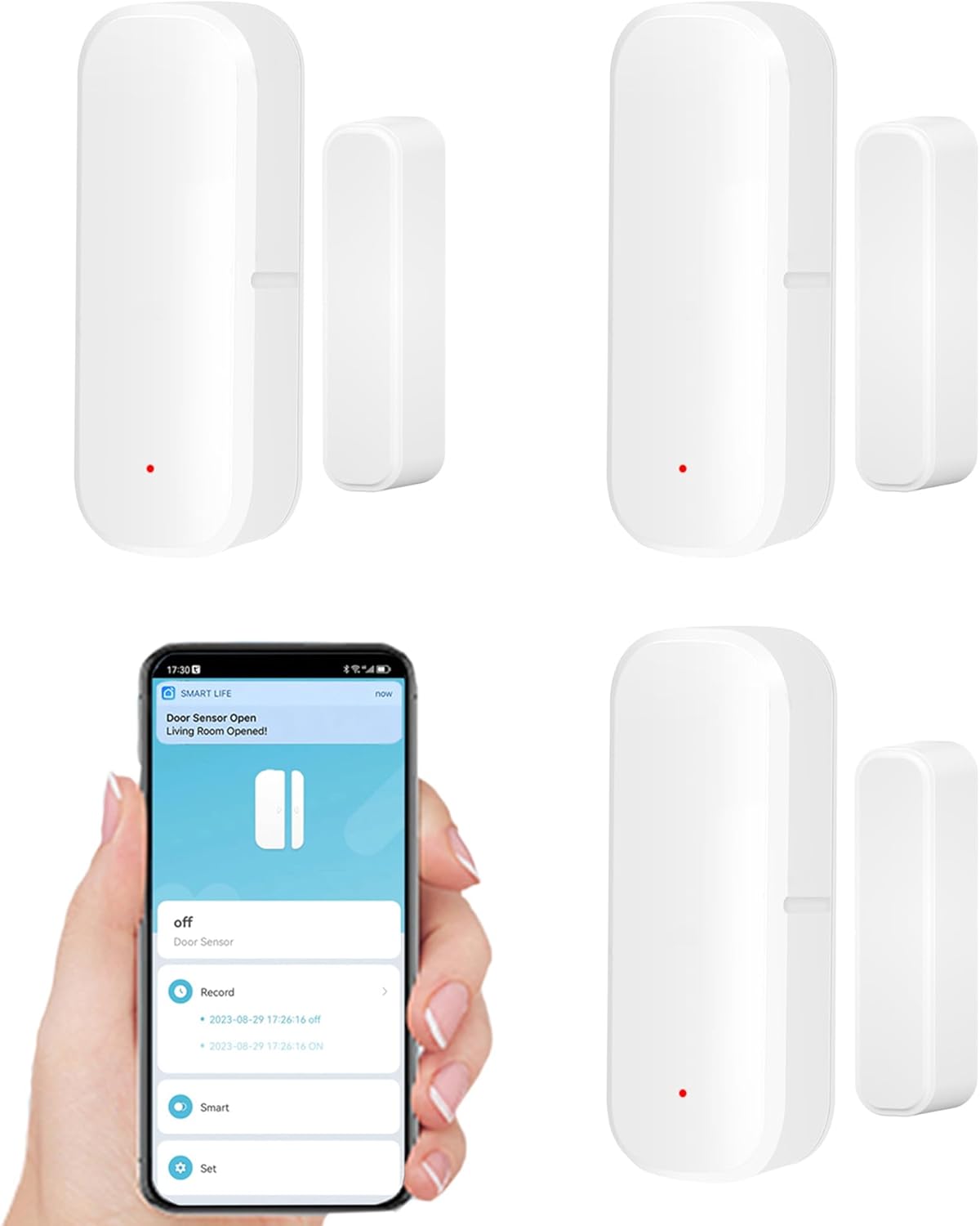 Smart Door Sensor: WiFi Door and Window Sensor, Wireless Design, Instant Alerts, Door Open Contact Sensor for Home Security & Smart Home Automation, Compatible with Alexa Google Assistant(3pack)