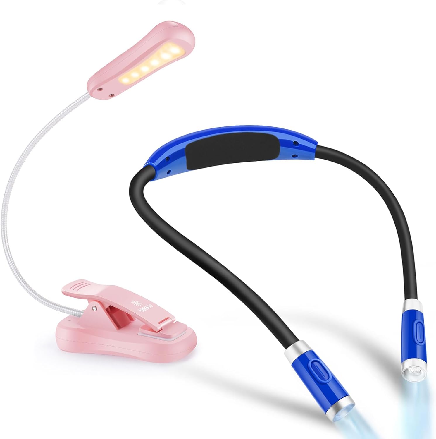 4 LED Blue Neck Reading Light and 6 LED Pink Book Light