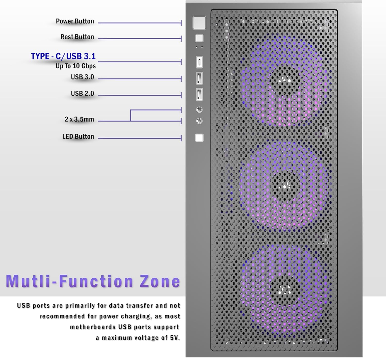 [Upgrade High Speed IO Panel ]-- KEDIERS PC case is rich in external interfaces to increase the cost, configured with USB 3.0 and TYPE-C high speed interfaces to facilitate the connection of various new standard devices, enjoy higher transfer rates and save waiting time; enjoy the wonderful experience brought by higher power supply. The Reset button and AUDIO interface are fully configured to meet the multi-functional needs of daily office and gaming.