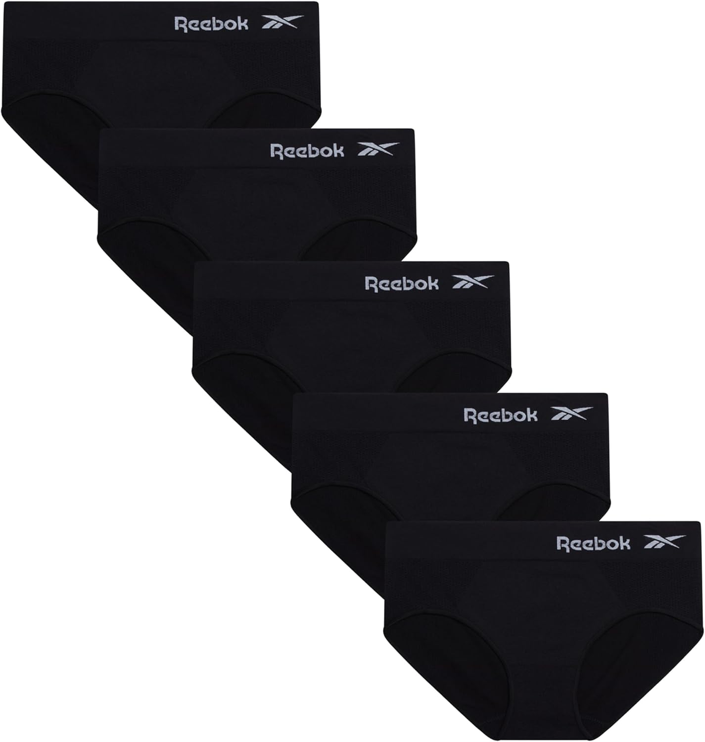 Reebok Hipster Panties for Women - 5 Pack Stretch Performance Seamless Underwear with Relaxed Tag-Free Waistband (S-XL)