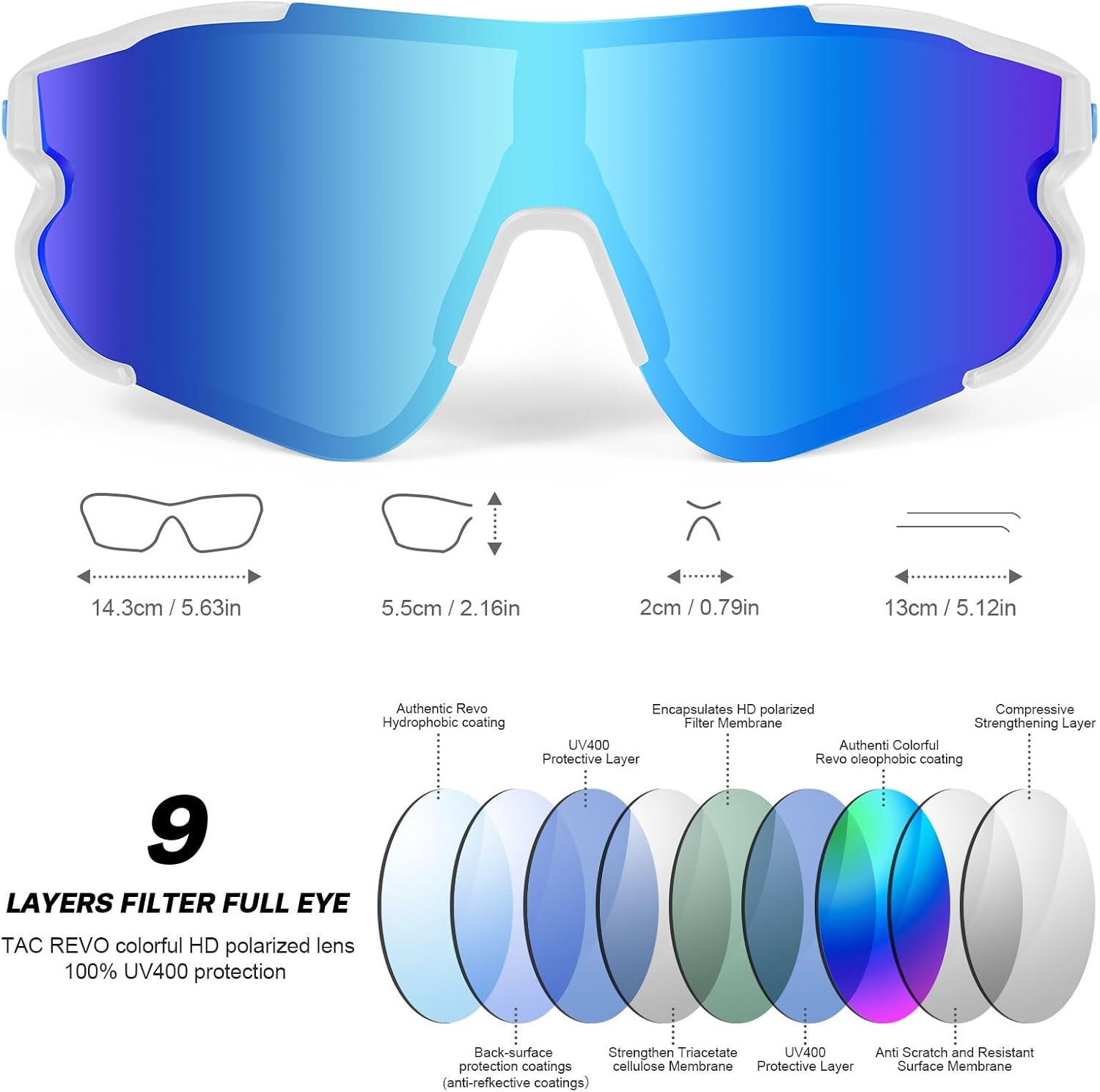 Odoland Polarized Cycling Glasses Sports Sunglasses,Interchangeable Lense,UV400 Baseball MTB Sports Glasses for Men Women
