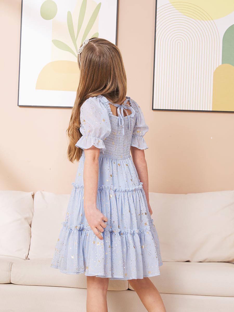 Girls Dresses Kids Stars Midi Dress Mid Night Toddler Short Sleeve Casual Fashion Clothes Flowy Outfits