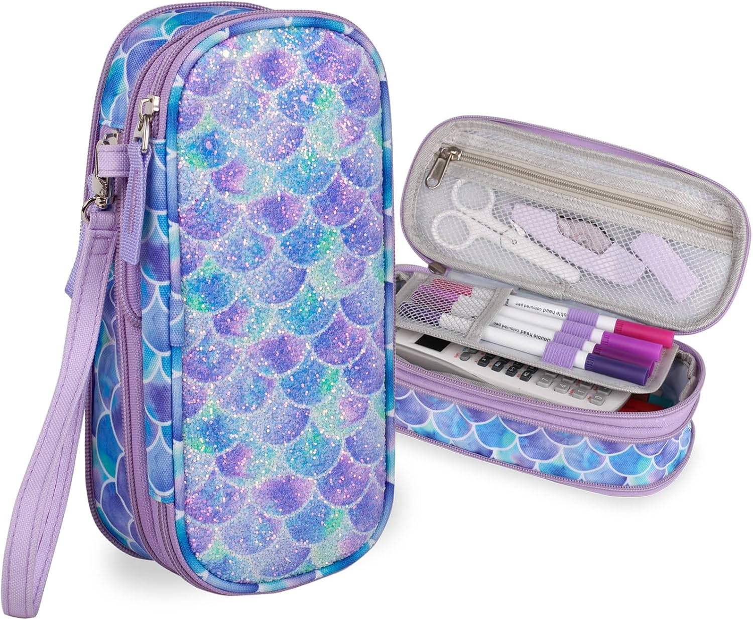 ATRIPACK Pencil Case for Gils Big Capacity High Large Storage Pouch Bag Marker Pen Case Stationery Bag Travel Holder School College Office Organizer for Kids Men Women Adult Teens(Mermaid Scale)