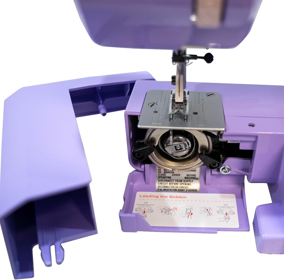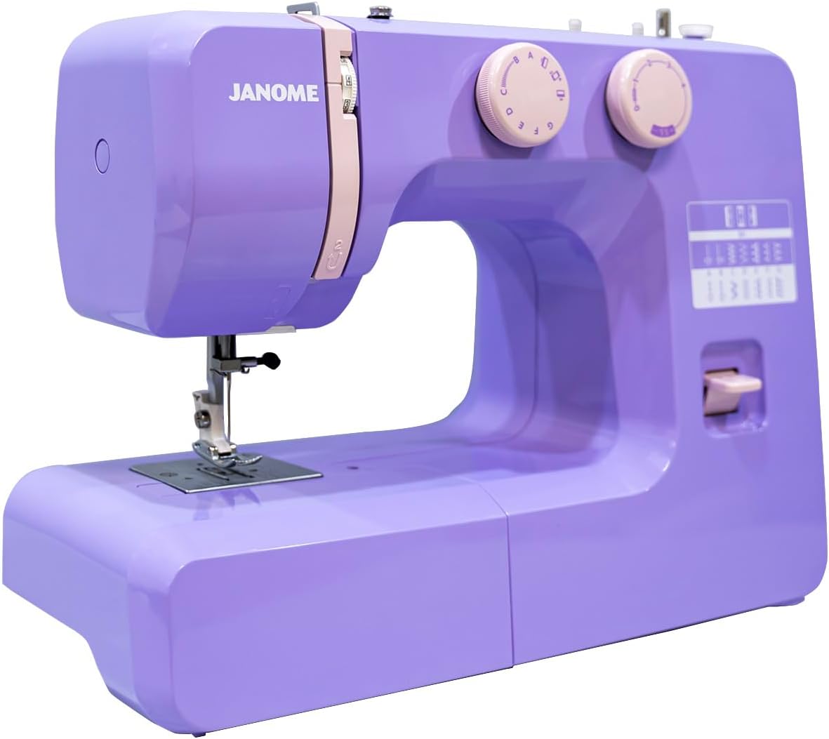 Fun colors. Serious sewing. Experience the fun of sewing with the Janome Lovely Lilac sewing machine! the Janome Lovely Lilac easy-to-use sewing machine was designed with beginners in mind! It includes an easy-to-follow instruction manual, quick start guide and YouTube video tutorials! this vibrant sewing machine also has a built-in bobbin loading guide that's is easily found within sight of the bobbin loading area. Boasting convenient features like 15 of the most popular and versatile built-in stitches, a four-step buttonhole, adjustable stitch length and a Front-Loading bobbin system, this sewing machine will be one you can grow into. Don't let the fun colors fool you, this full-sized sewing machine also has an interior heavy duty metal frame, dual retractable spool pins, and four Presser feet. The Janome Lovely Lilac sewing machine is versatile, so you can tackle projects like garment sewing, home decor, quilting and even heirloom projects with ease