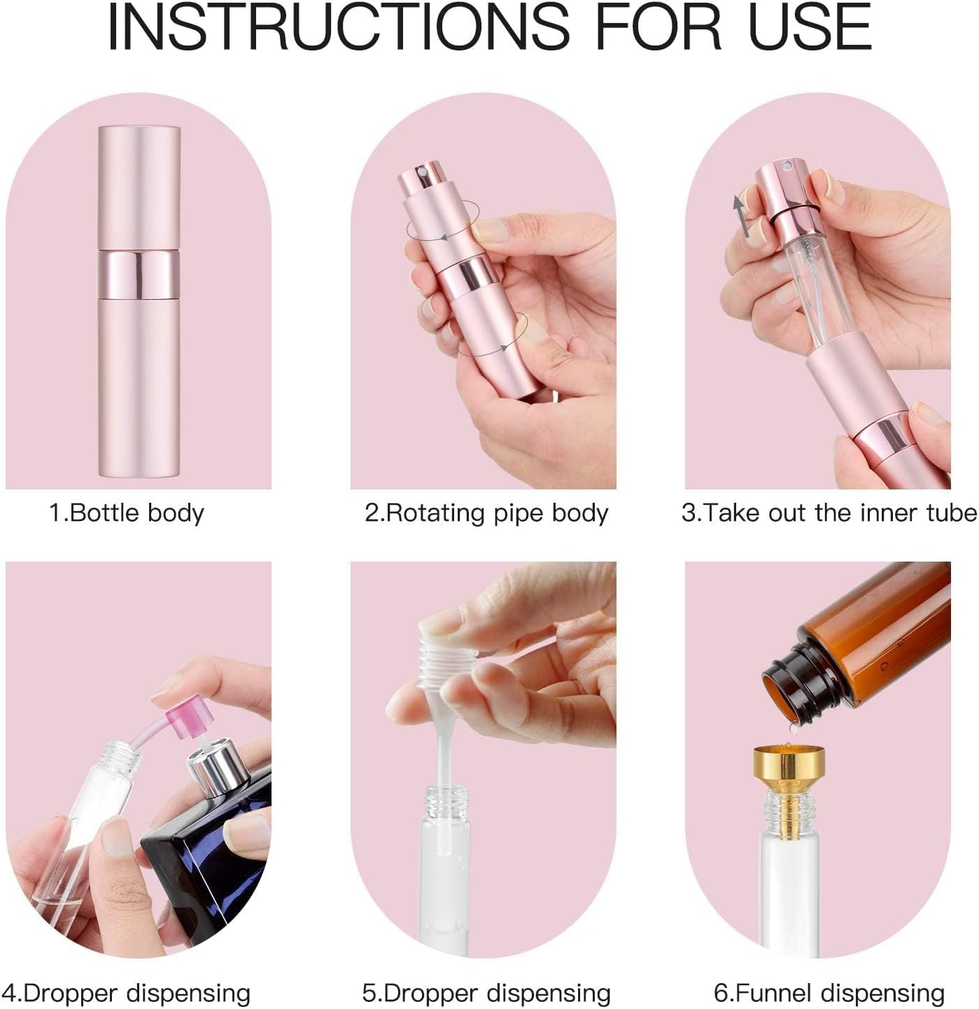 【Package Included】The perfume atomizer bottle is available in different colors. Besides, the funnel, pipette, and transfer application are all included in the package, easy and convenient to load the liquid in the bottles.