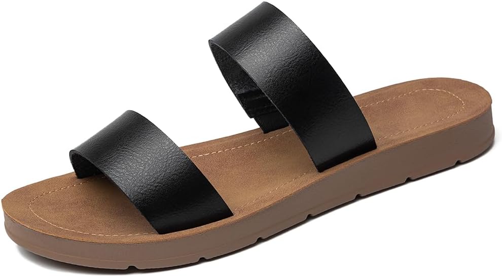 Women Casual Open Toe Two Bands with Elastic Fashion Slide Flat Sandal