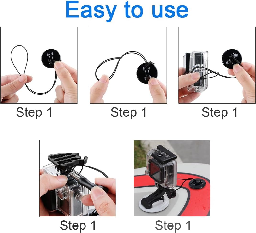 Action Camera Safety Tether Strong Adhesive Stickers Strap Cord Compatible with GoPro Hero 12, 11, 10, Insta360 X4 X3, DJI OSMO, SJCAM, AKASO Action Camera Helmet Mounts
