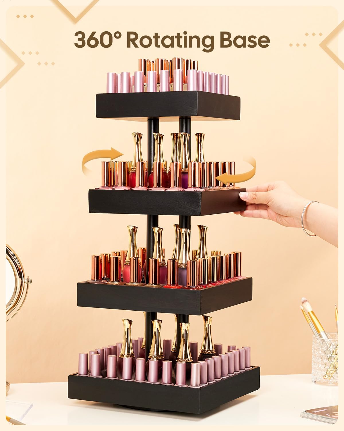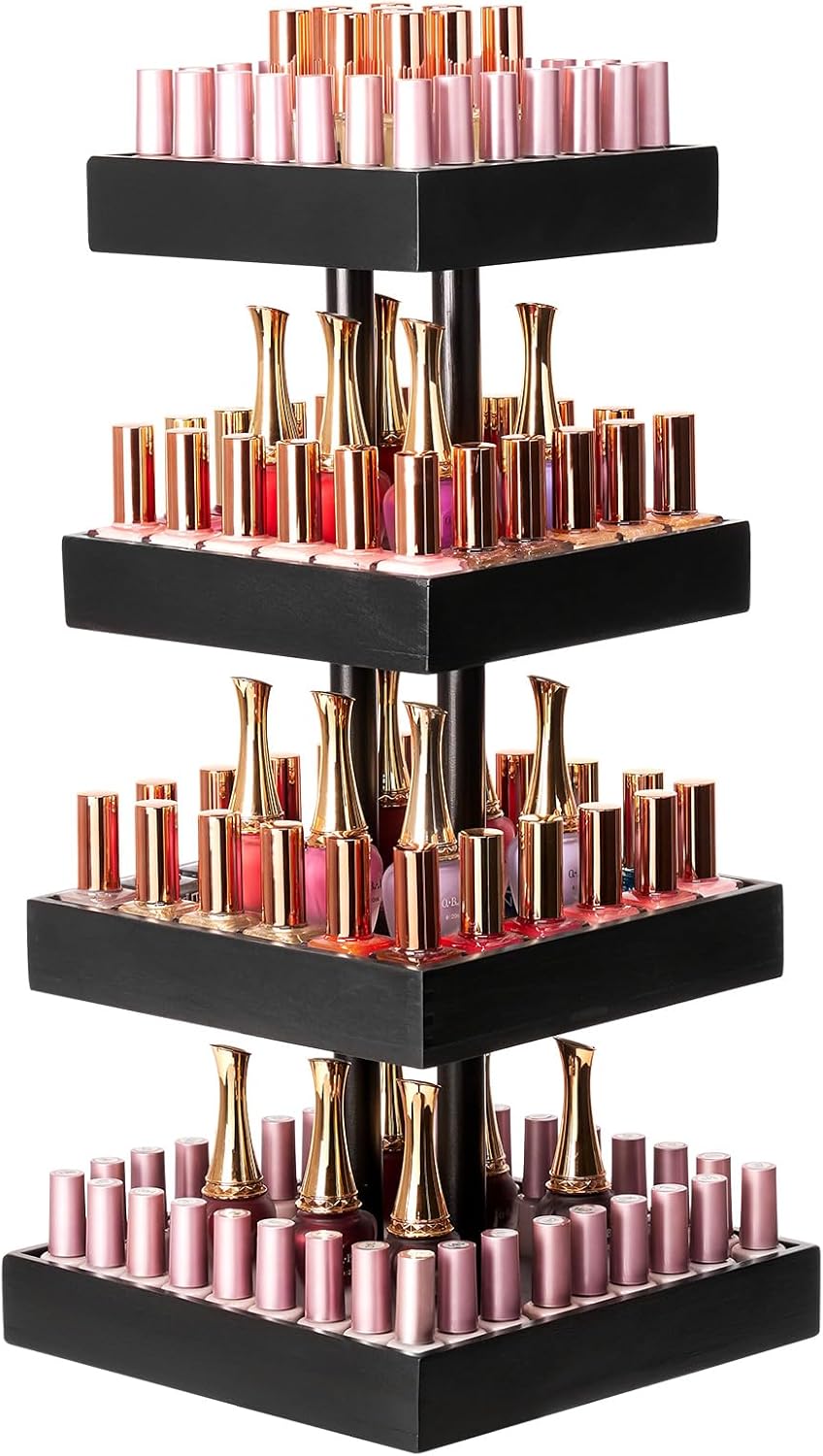 Enough Storage Space to Hold Up to 212 Bottles: 4-tier design provides enough storage space. Depend on the size of the nail polishes, it can hold 120 - 212 bottles, perfect for households or individuals with a large collection of nail polish. You can also store cosmetics such as lipstick, eye shadow, eyelashes or mini perfumes in this spacious storage rack. Make this versatile organizer your own personalized shelf