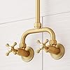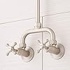 Wash away the stress of your daily routine with the Baudette Wall-Mount Shower with a rainfall showerhead. Featuring classic cross handles and an exposed pipe, this timeless shower unit is made of solid brass. Signature Hardware 922235 Features:: Covered under Signature Hardware's 25 Year Limited and a commercial warranty Installs on existing plumbing after removal of previous shower arm Existing valve and trim required for use High quality finish will resist rust and corrosion through everyday use Riser pipe can be adjusted by cutting on site Unit is made of solid brass Signature Hardware 922235 Specifications:: Overall height measures 42" Shower Head Flow Rate: 1.75 gallons-per-minute Shower arm extends 18" 8" diameter rainfall shower head 1/2" IPS riser 6" centers