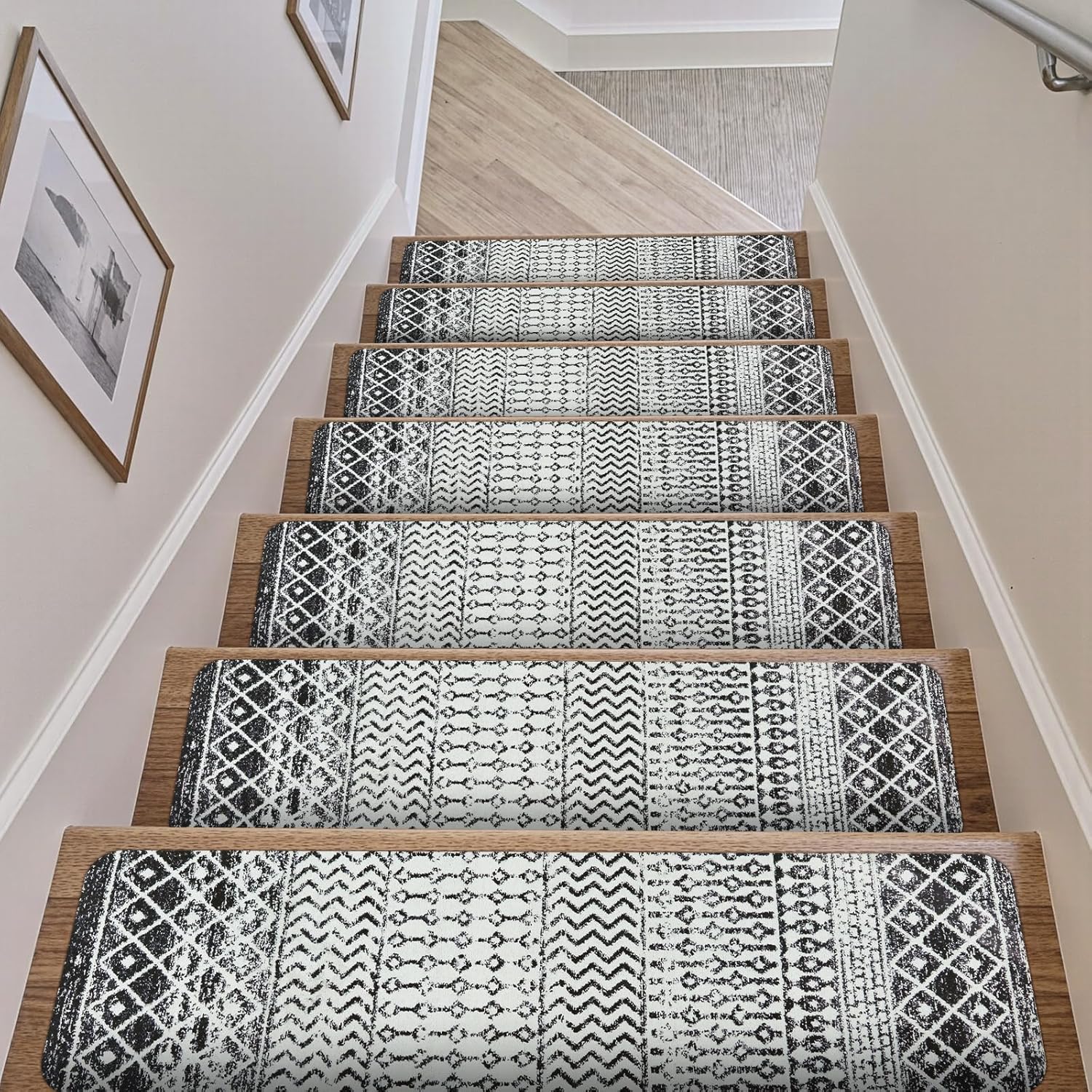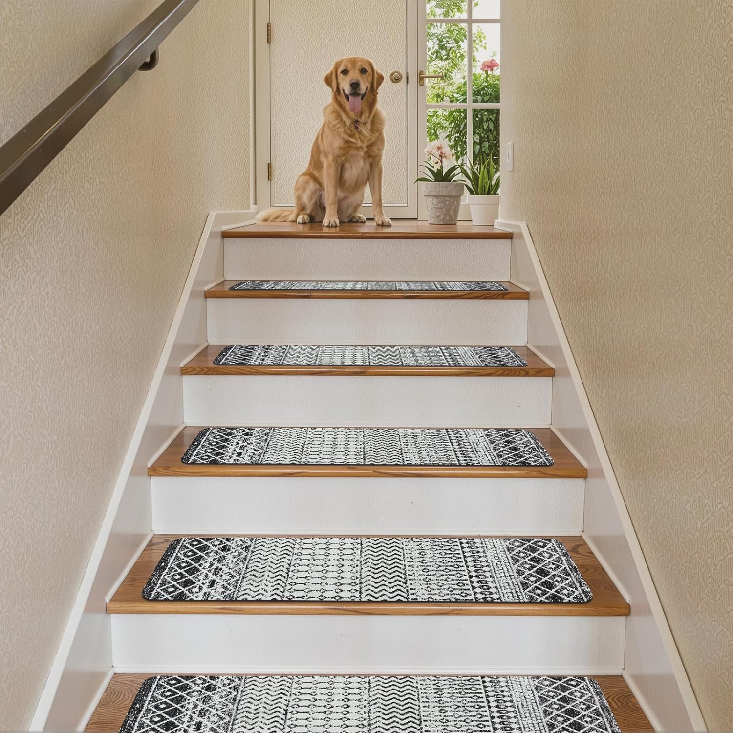 Non-Slip Stair Treads: Powerful anti-slip rubber backing ensures these stair runners stay securely in place on your stairs; features 0.16" thickness, providing excellent step buffering, noise reduction, and slip protection, making every step safer for kids, elders, and pets