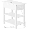 HOOBRO End Table with Charging Station, Flip Top Side Table with USB Ports, Narrow Nightstand Bedside Tables with Storage Shelves, for Small Space, Living Room, White WT141UBZ01