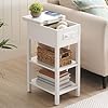 Compact yet Spacious Narrow Side Table: Sized at 11"L x 18.5"W x 25.5"H, the end table occupies minimal space, ideal for small spaces. The clamshell drawer offers place for concealed storage, while the 2 lower shelves hold clock, plants, and storage bins for an organized space