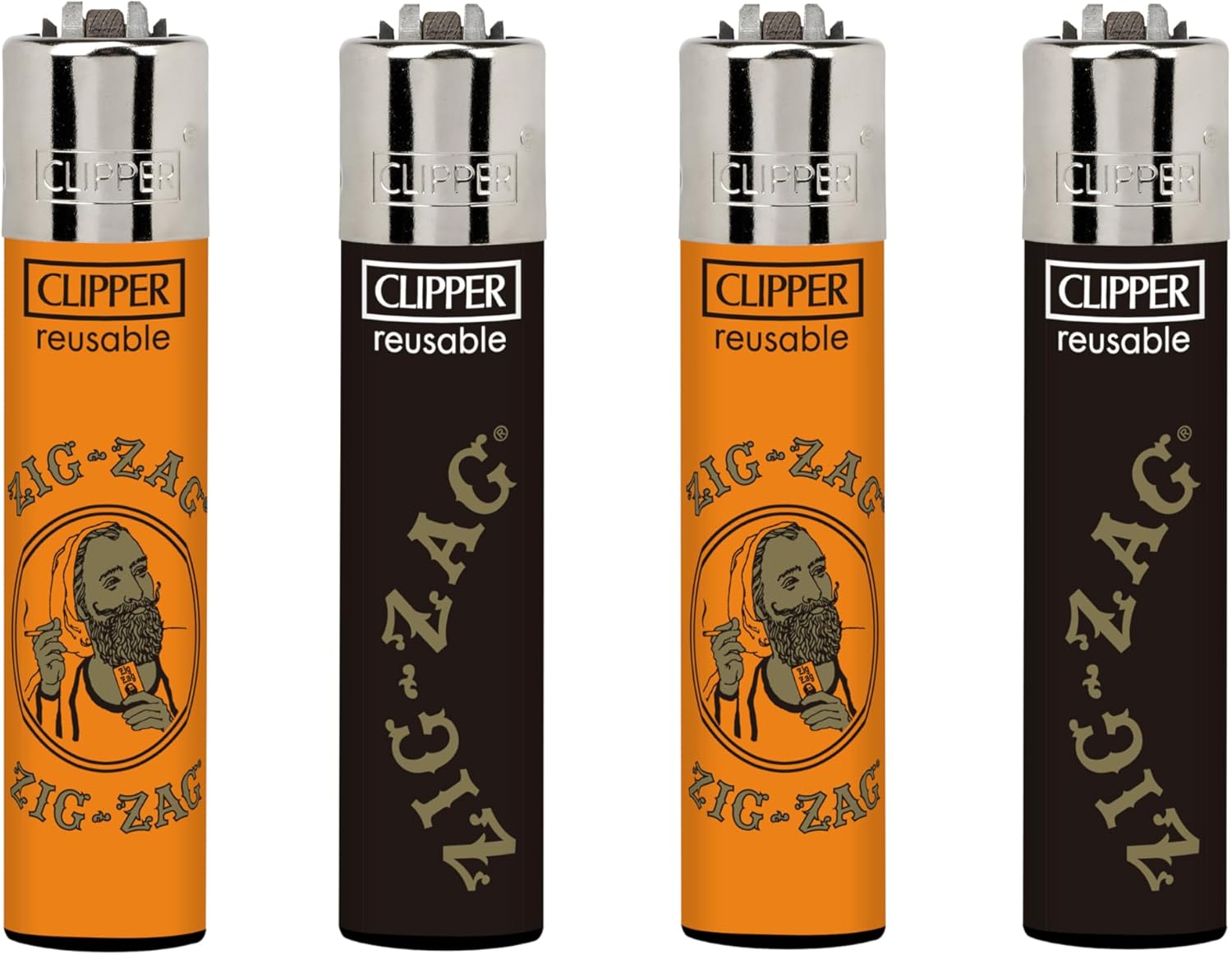 Clipper - Classic Large Reusable Lighter - Iconic Premium Refillable Lighters Bulk Pack - Replace Butane, Flint, and Spark Wheel for Unlimited Lights - 8 Pack - Zig Zag 1
