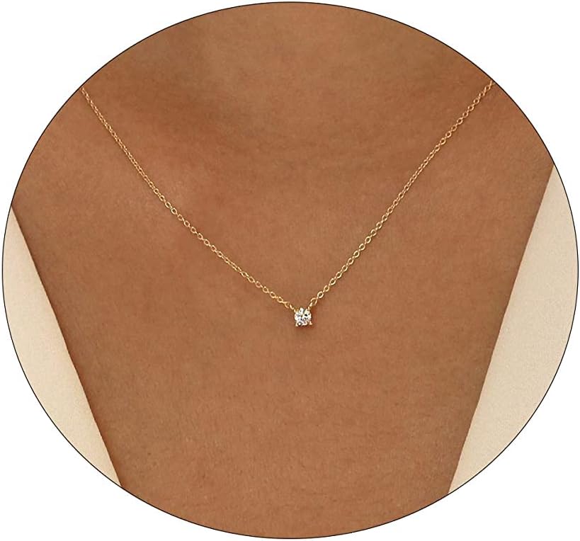 CZ Diamond Necklace for Women Dainty Square Cubic Zirconia Splints Solitaire Pendant Necklace for women 14kGold/Silver Plated Different Width Square CZ Pendant Necklaces Simulated Diamond Bridesmaid Jewelry for Women