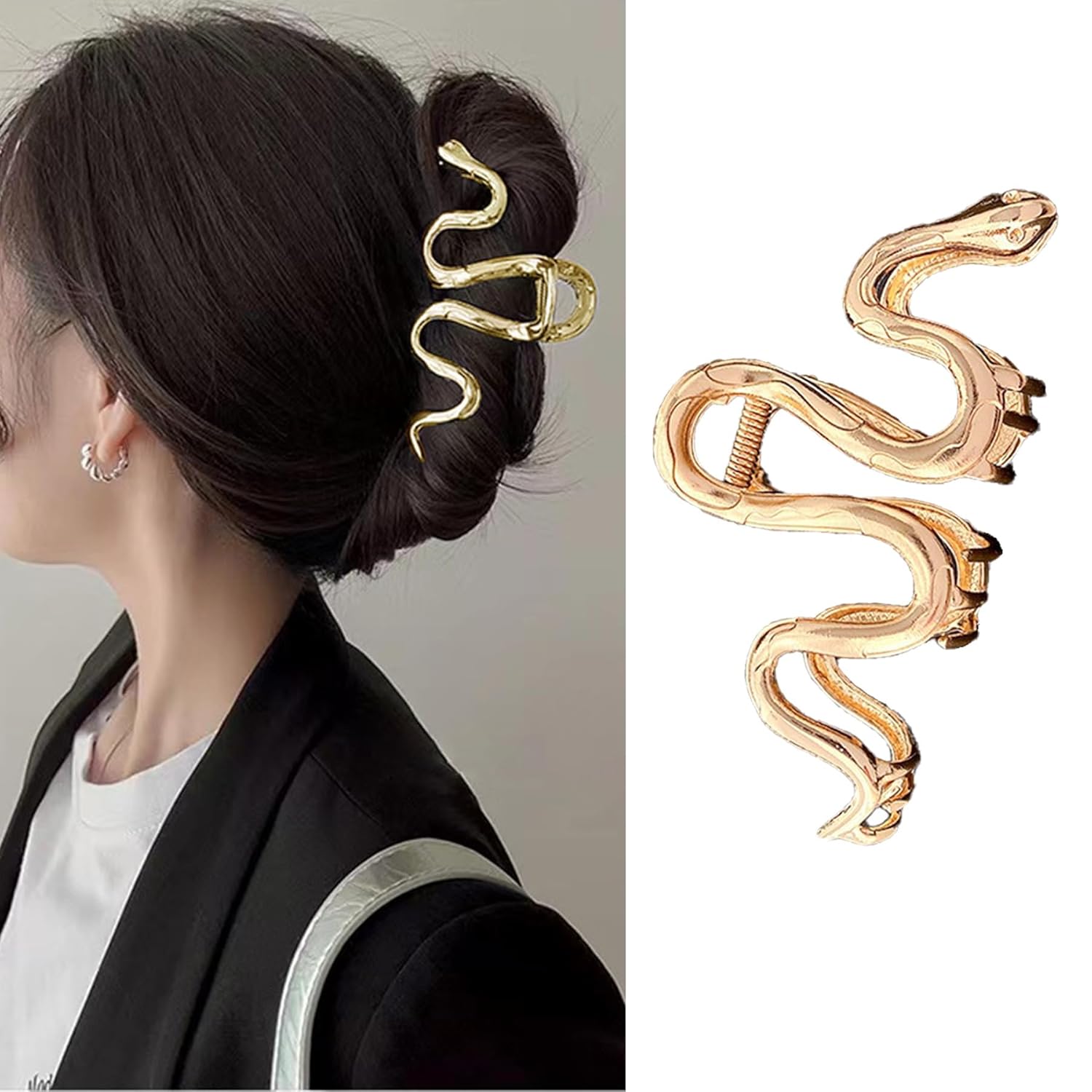 Snake Metal Hair Claw Clip Large Hair Jaw Elegant Hairpin Nonslip Hair Clamp Hair Accessories for Women Girls Gold