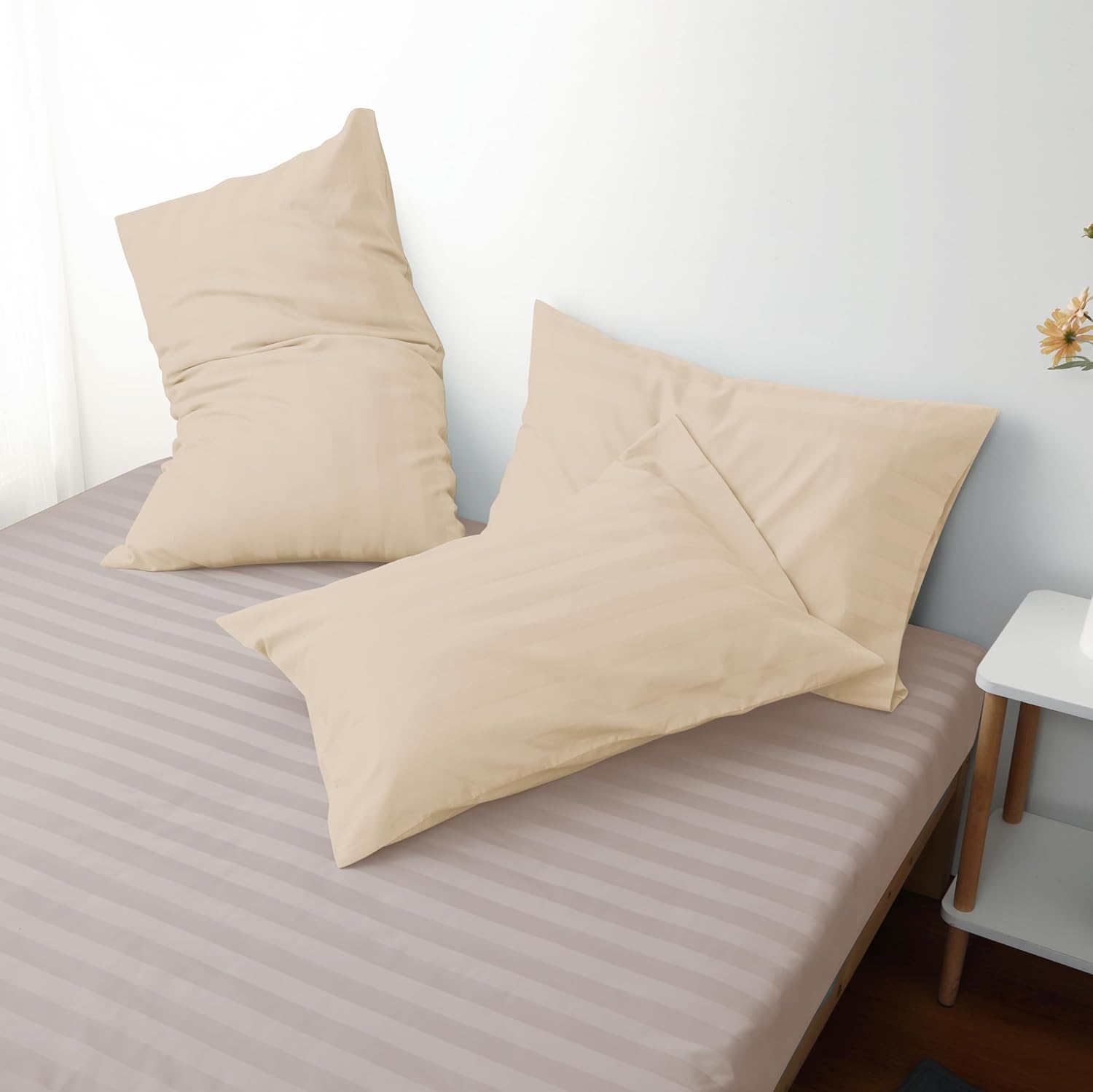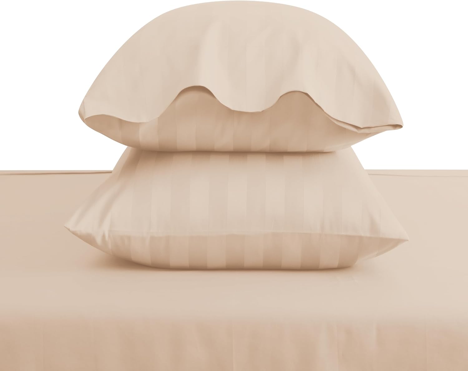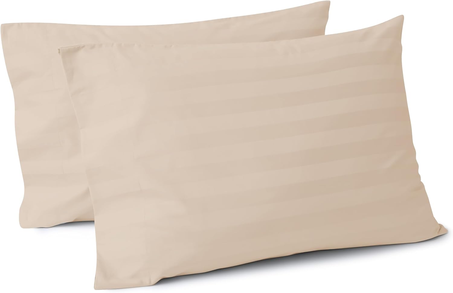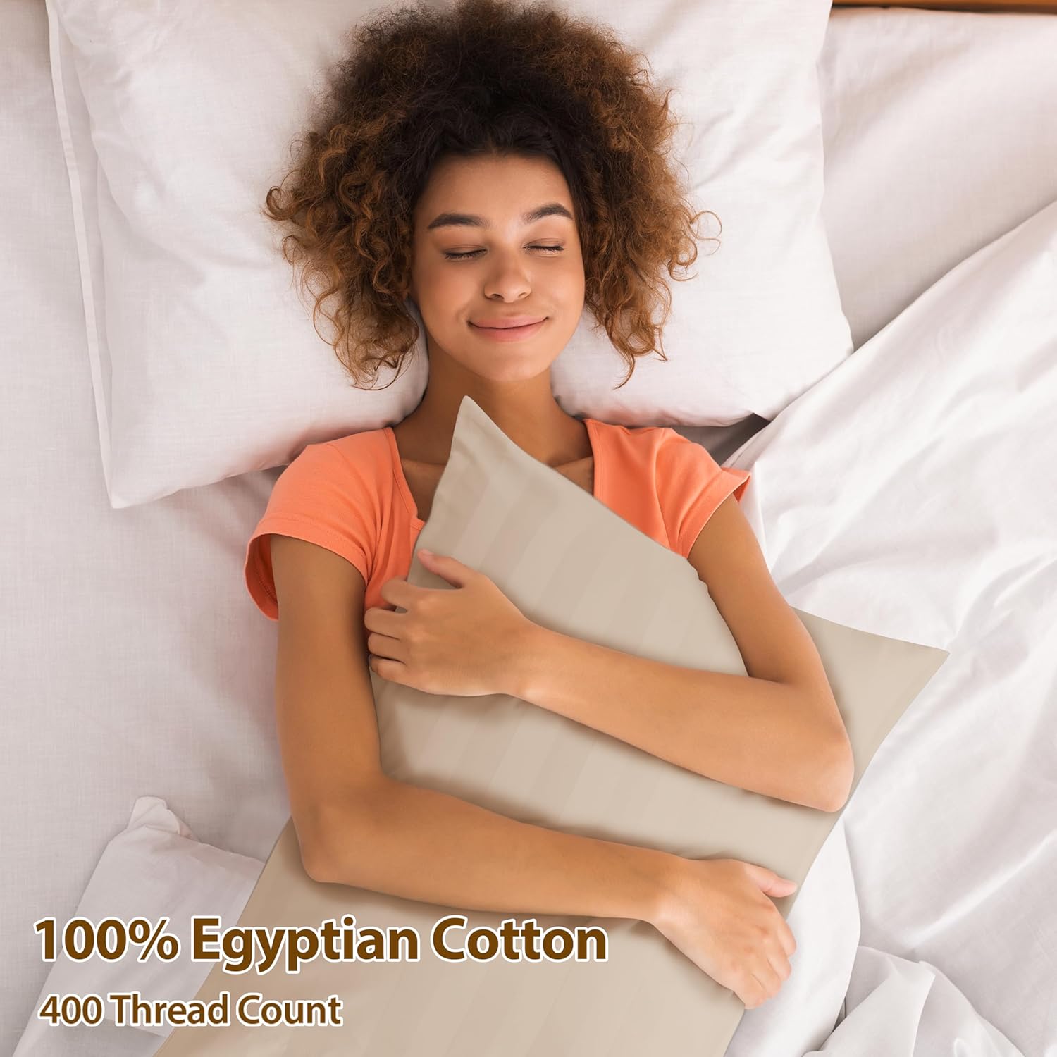 100% Egyptian Cotton Pillow Cases Set of 2,King Size 400 Thread Count Cooling Pillowcases,Soft and Breathable Pillow Covers with Envelope Closure,20x36 Inches,Striped Beige