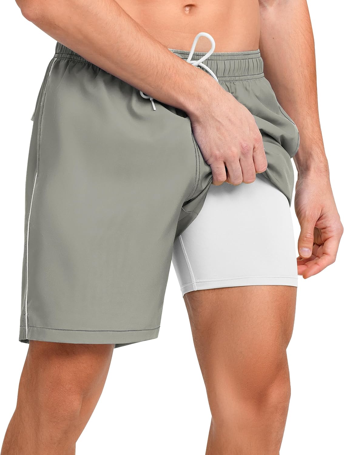 unitop Mens Swim Trunks with Compression Liner Quick Dry Beach Board Shorts with Pockets