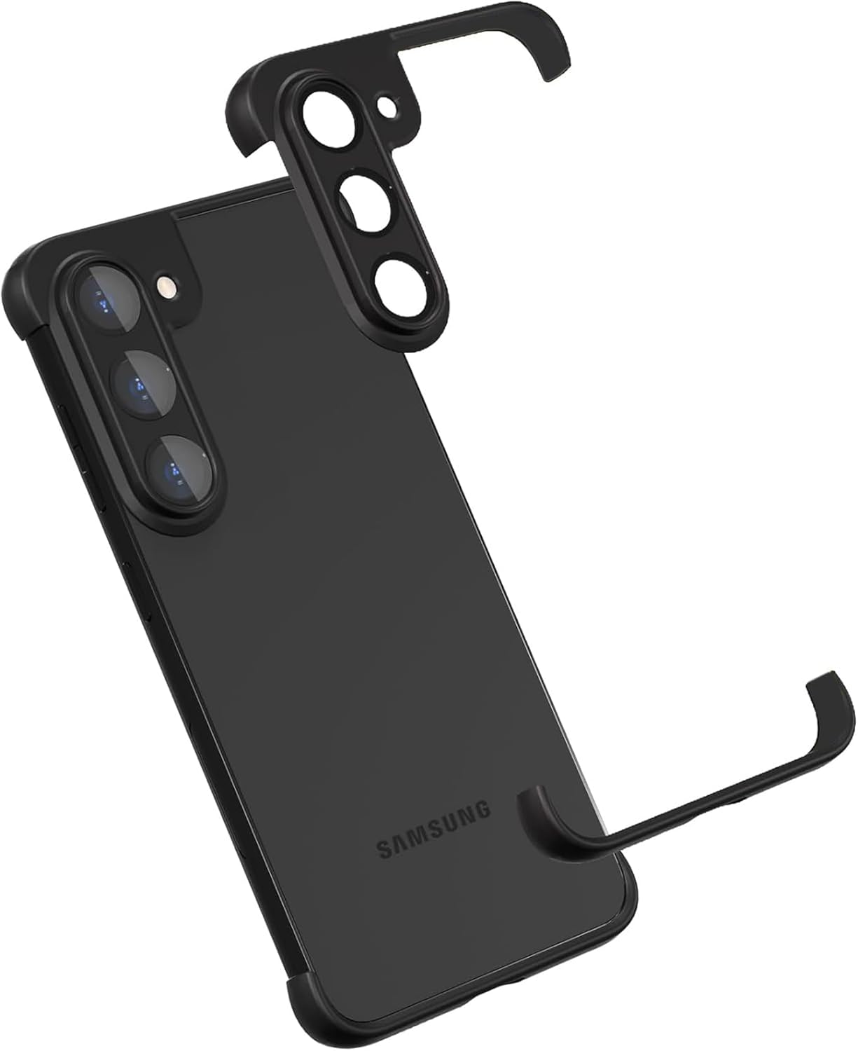 for Samsung Galaxy S24 Plus Frameless Case Built-in Camera Lens Protector Frameless Backless Slim Lightweigh Soft TPU Bumper Frame Cover Shockproof Protection Drop-Proof case (Black)