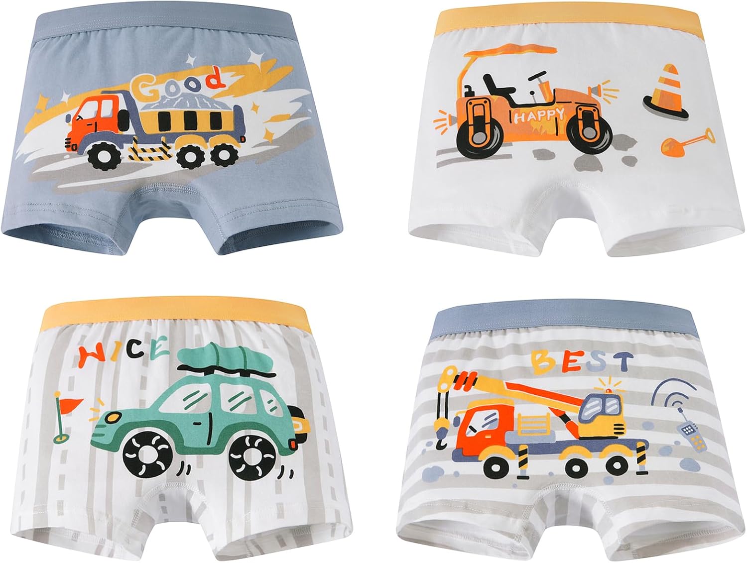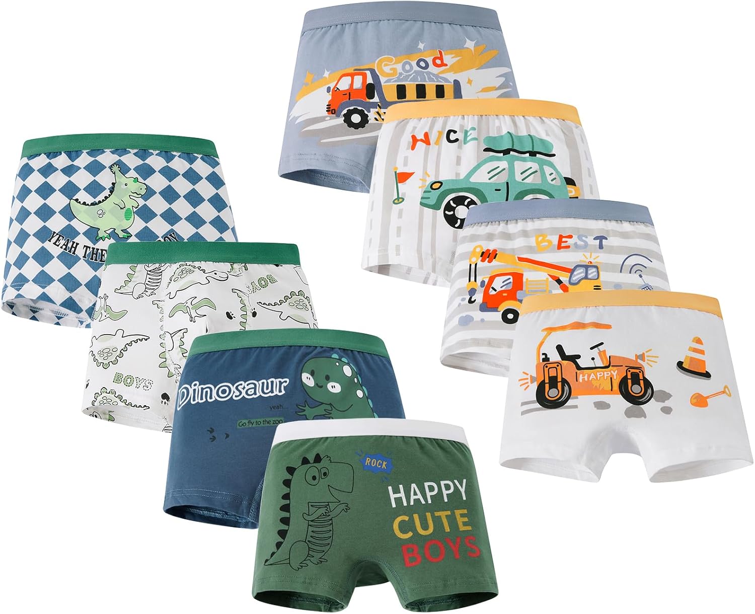 CHUNG Toddler Little Boys Underwear Soft Cotton Boxer Briefs 2-11Years Dinosaur Pack for Pupil Kindergarten Kids