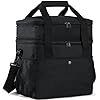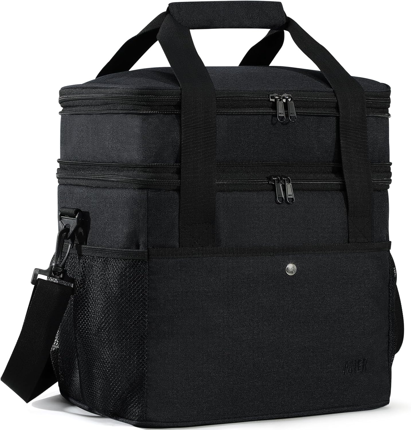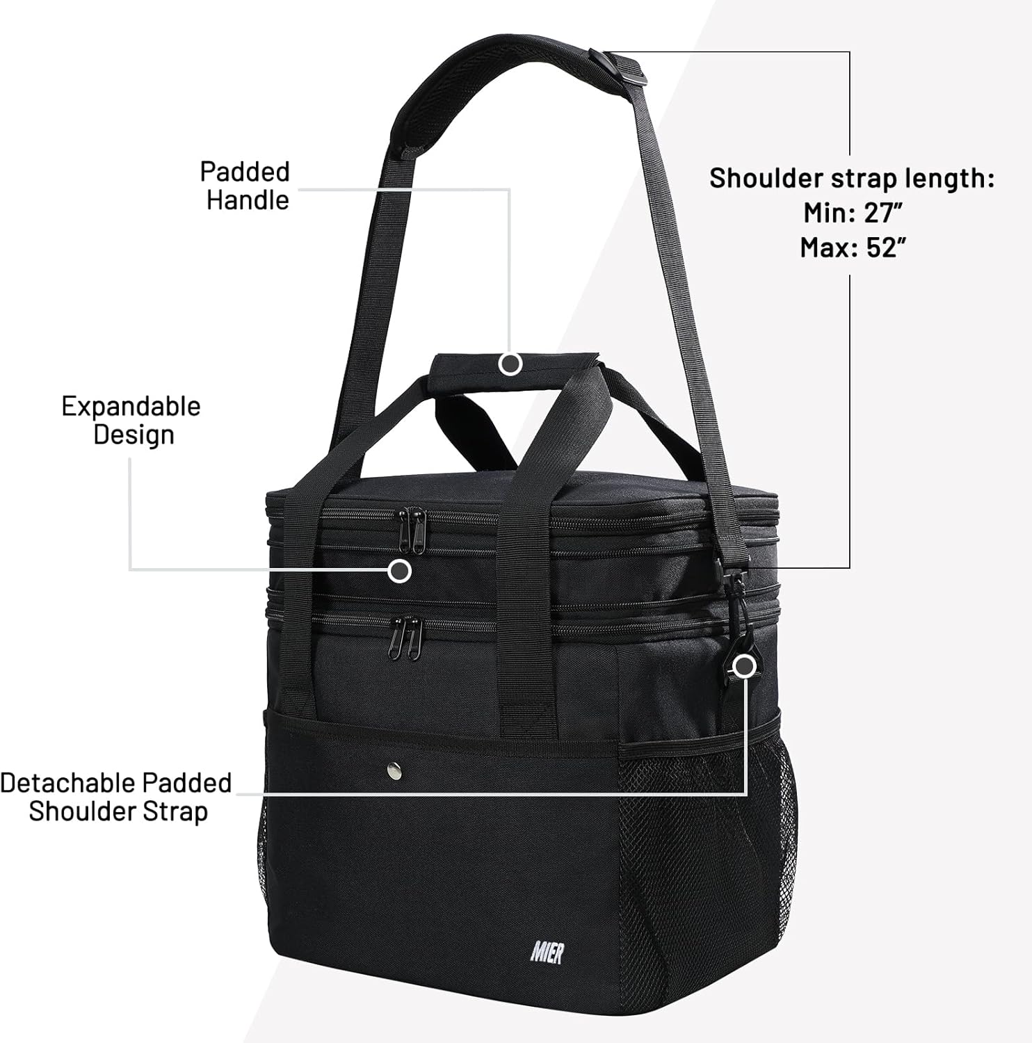 MIER Expandable 24L Lunch Bag Double Layer Insulated Cooler Tote Soft Cooler Bags 30Can Mens Adults Lagre Leakproof Lunch Boxes for Work, Picnic, Camping, Travel, Black